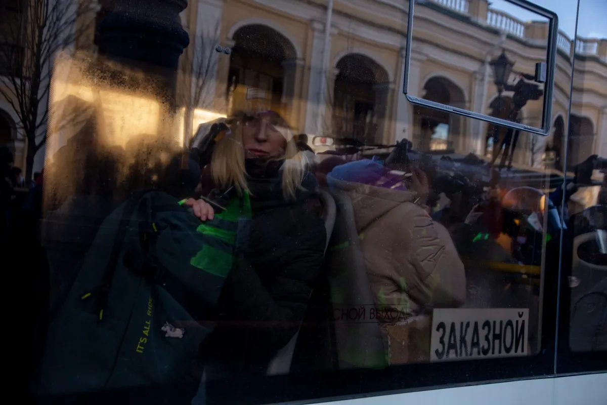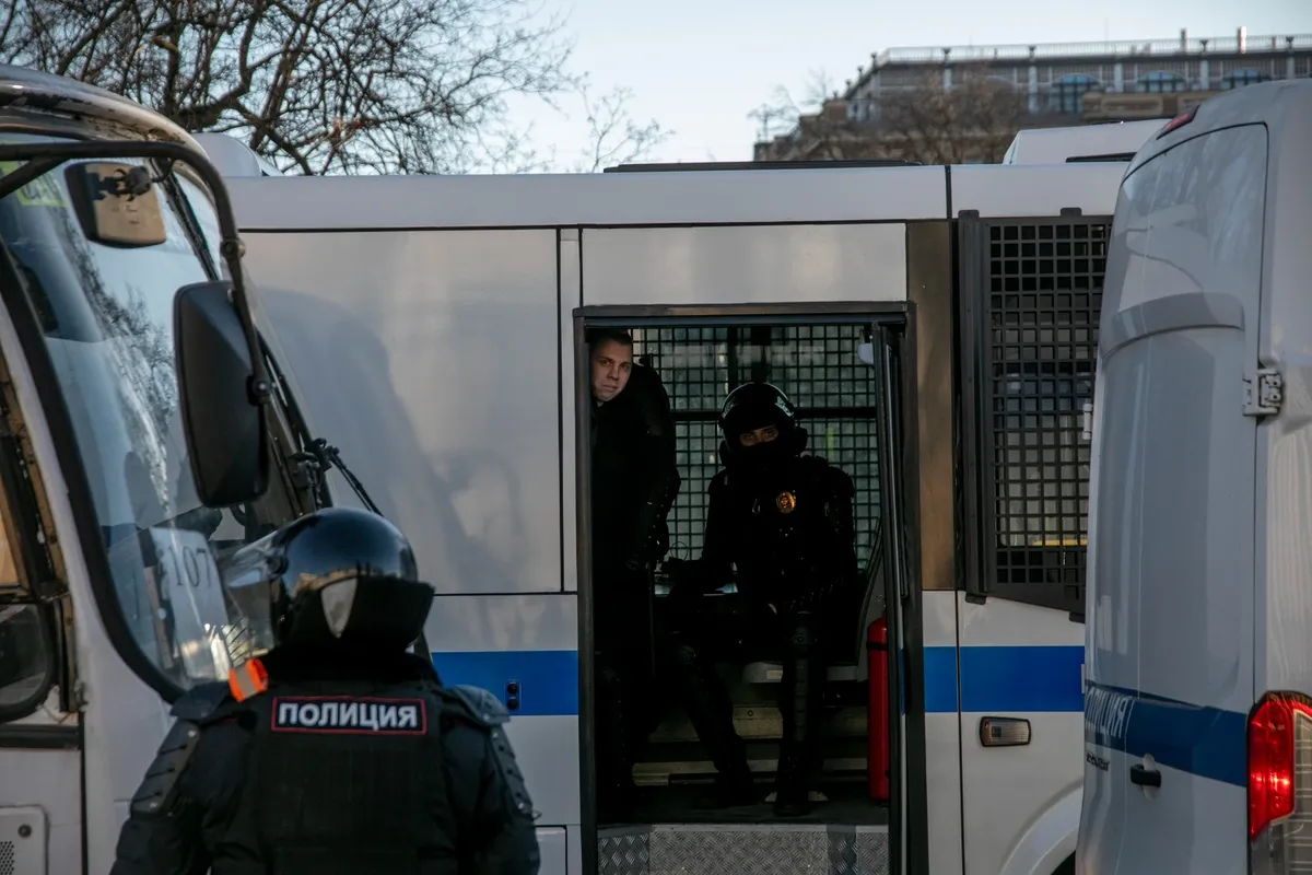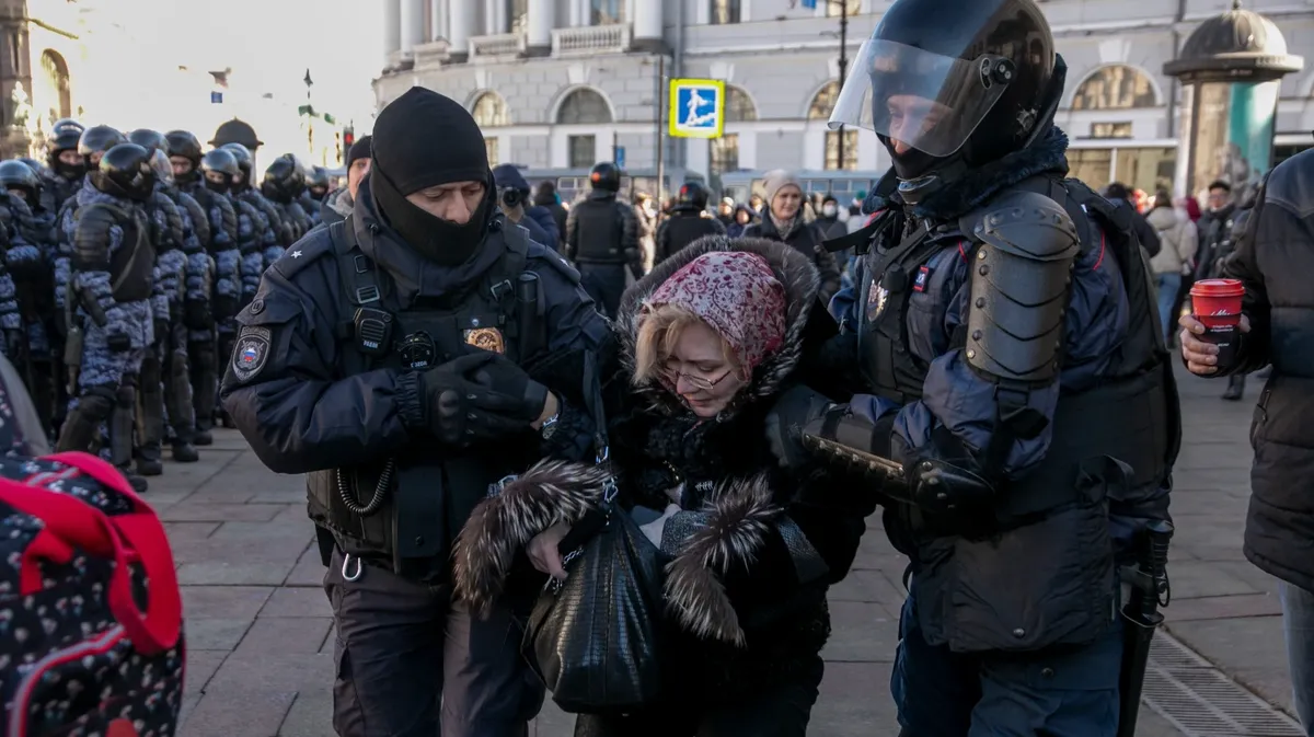 Шестого марта, около 14:30, я пришла на центральную улицу, где собирался народ. Толпа была совсем небольшой, даже силовиков было больше. Там сзади ко мне подошел сотрудник полиции, быстро представился и попросил развернуться, затем повел к машине. Там уже сидела женщина с дочерью, у женщины на рюкзаке были ленты в цвета флагов России и Украины, у ее дочери вместо шнурков на обуви такие же ленты.