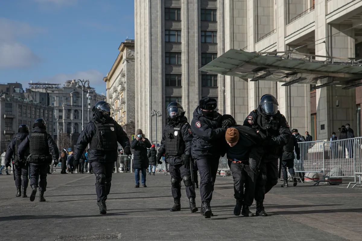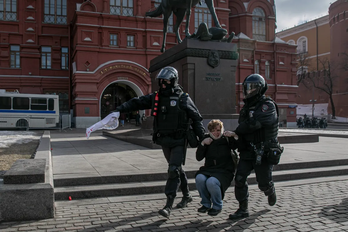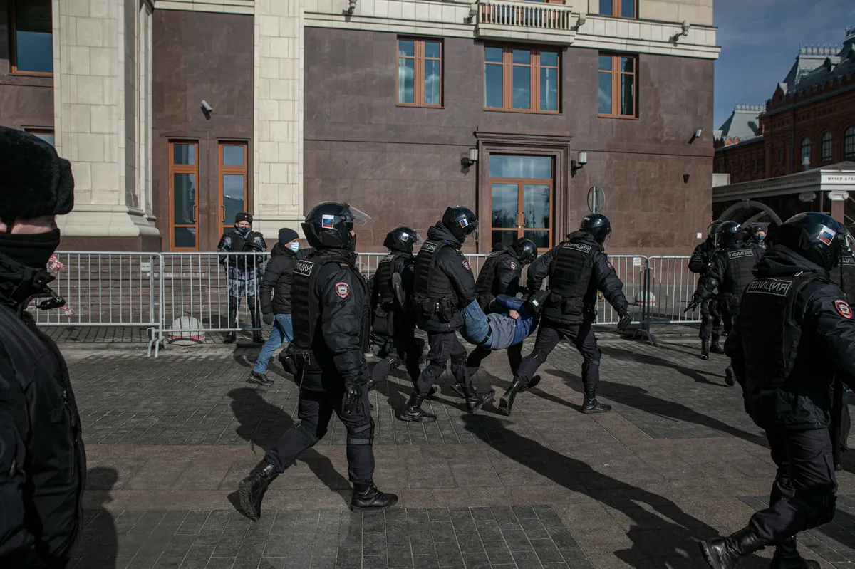 У стен Кремля прошла «спецоперация»: противников того, что происходит сейчас в Украине, задерживали и волокли люди с «Z» на шлемах