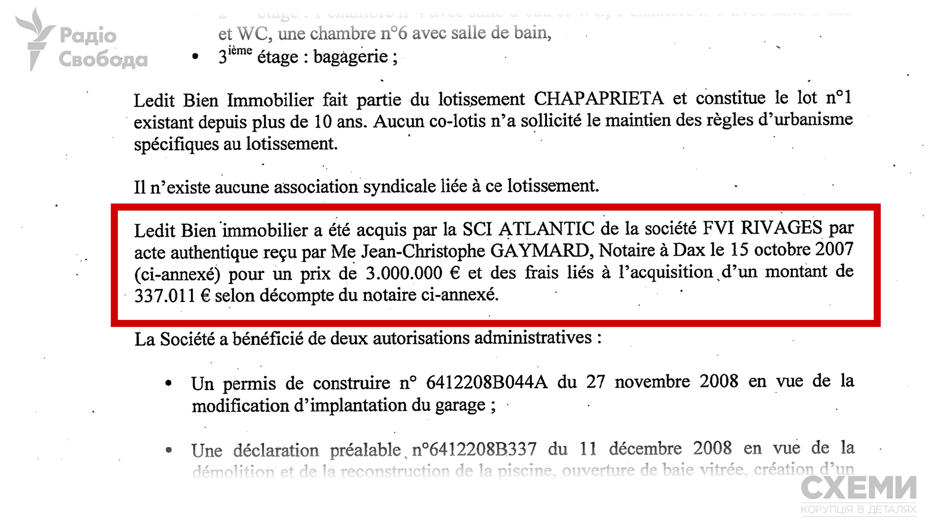 Об этом сообщают журналисты программы «Схемы» (проект Радіо Свобода), ссылаясь на внутреннюю документацию французской компании SCI ATLANTIC.