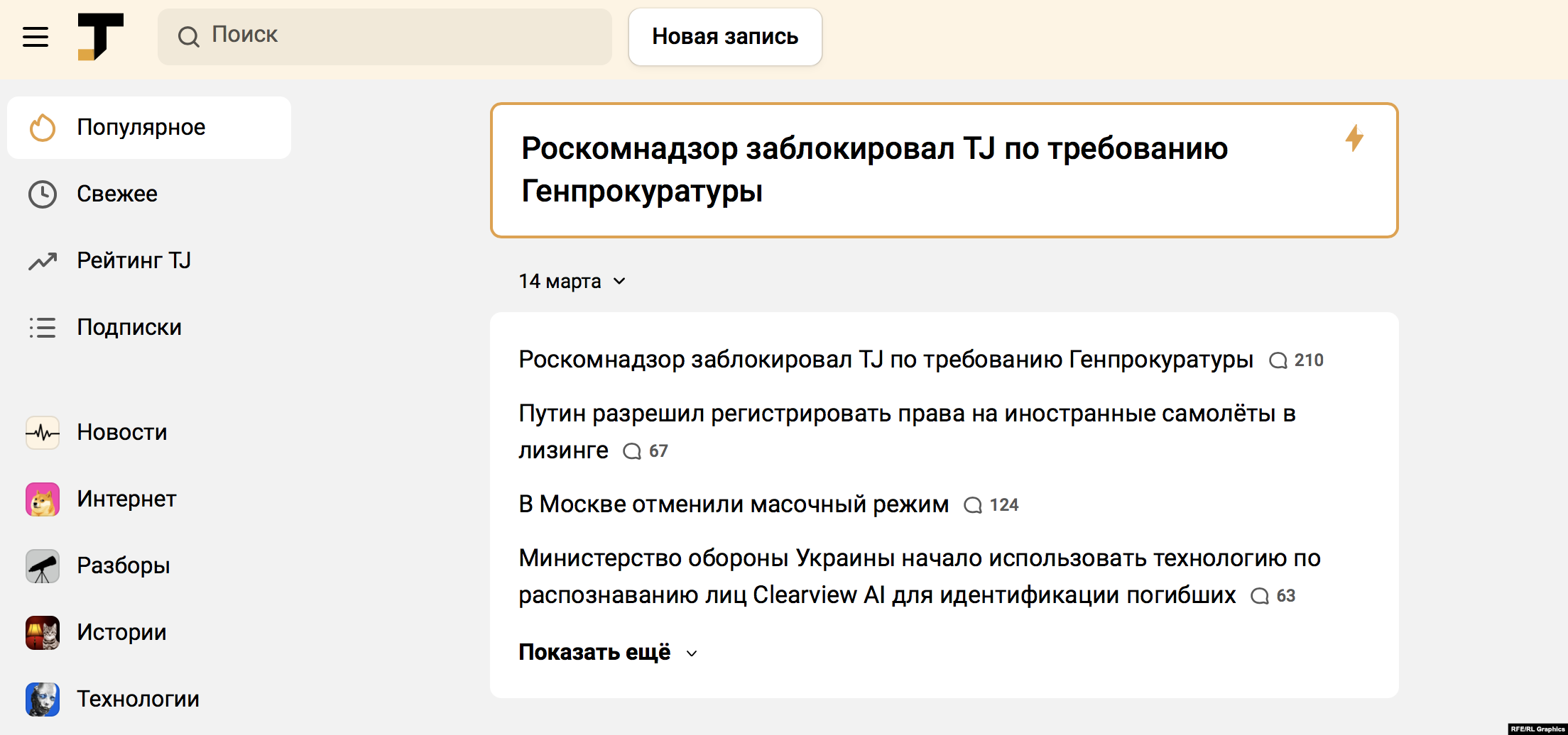 Роскомнадзор заблокировал сайт TJ по требованию Генпрокуратуры, сообщают сотрудники издания.