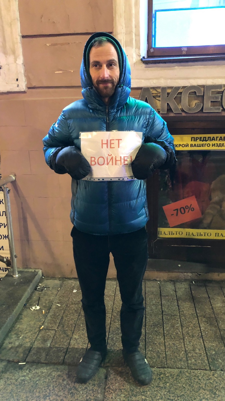Фото Григория с одиночных пикетов, на которых он стоит с самодельным плакатом "Нет войне!", до сих пор висят в его соцсетях.
