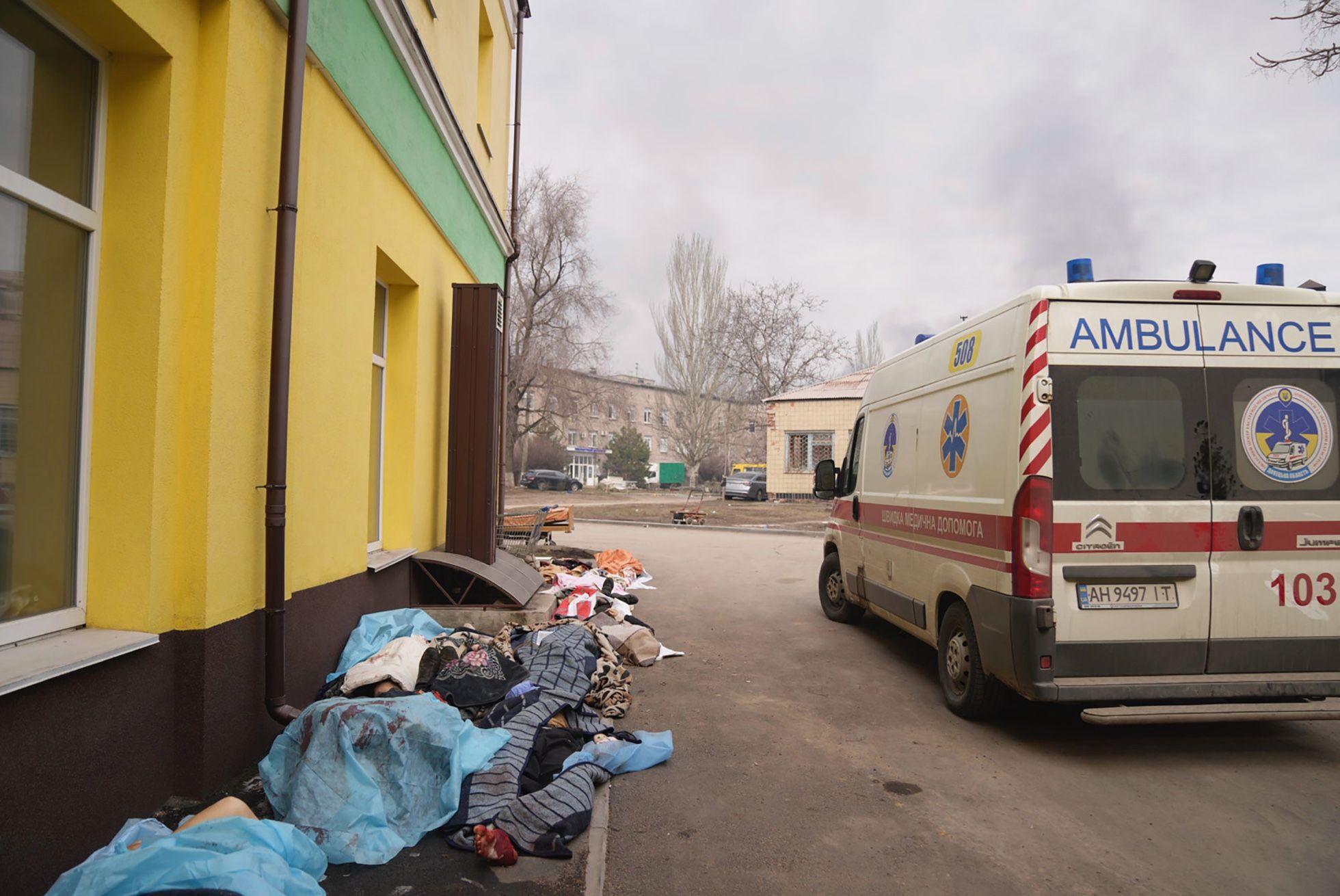 Мариуполь. Тела погибших в результате артиллерийского обстрела