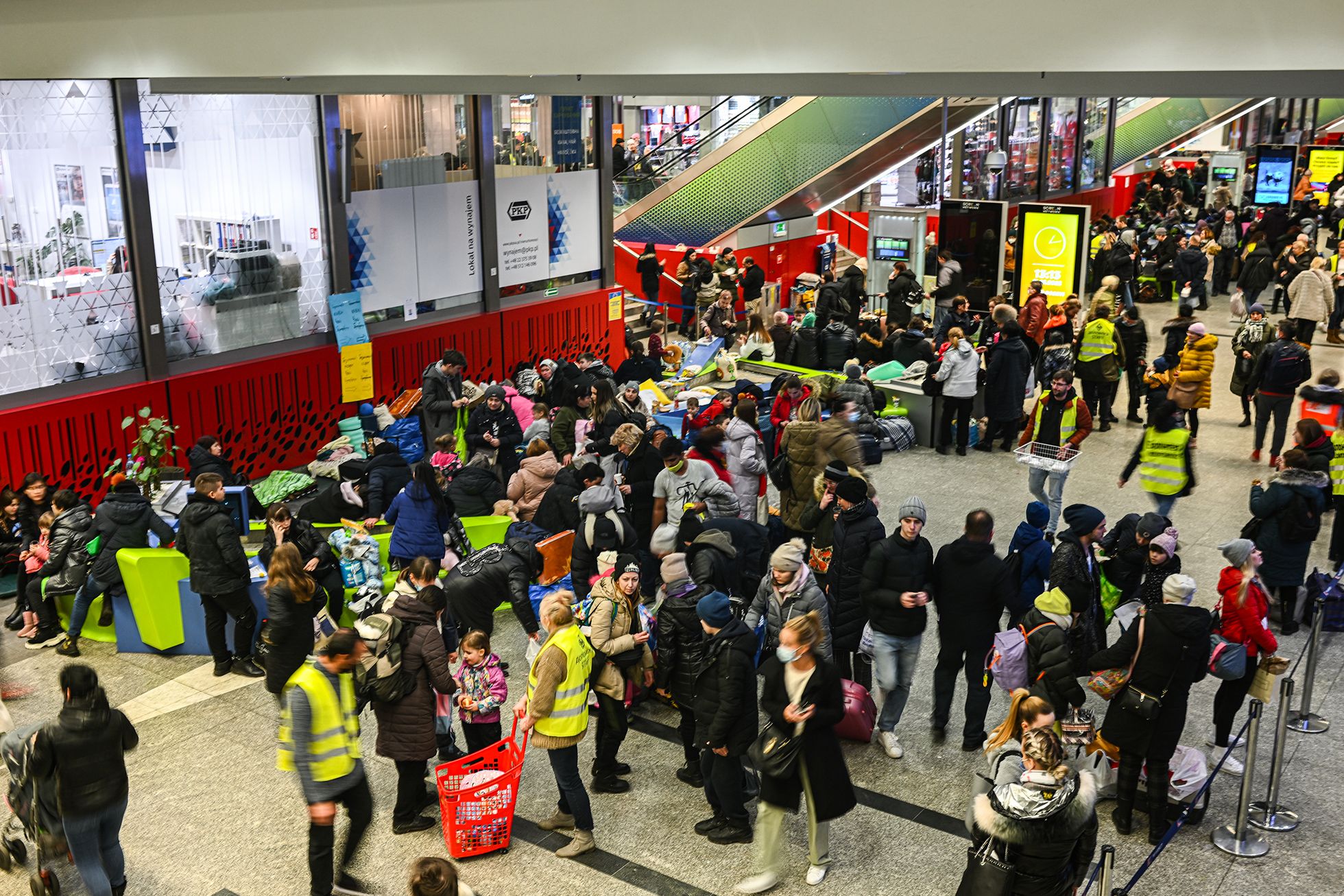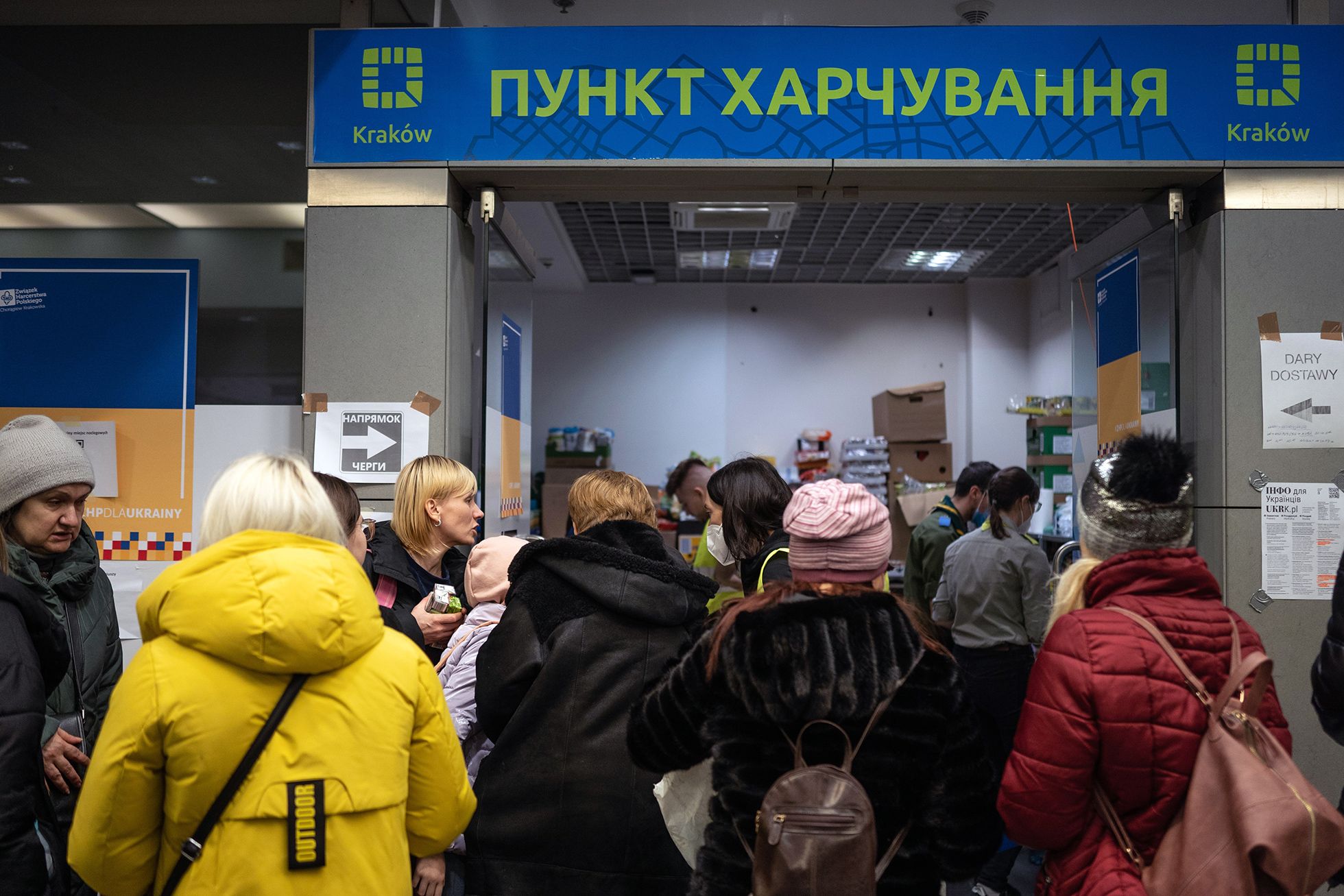 Главное место Кракова для тех, кто бежал от войны, — железнодорожный вокзал. Сюда беженцы из Украины приезжают на поездах, электричках и автобусах: автовокзал находится через дорогу. Здесь же получают еду, воду, предметы первой необходимости — сим-карты (по ним можно бесплатно звонить в Украину), одежду, памперсы и прокладки. На вокзале можно получить и помощь в поиске временного дома, работы или транспорта для дальнейшего пути. Билеты бесплатно выдают по украинскому паспорту, кроме того довезти до нужного места вызываются и многие поляки.