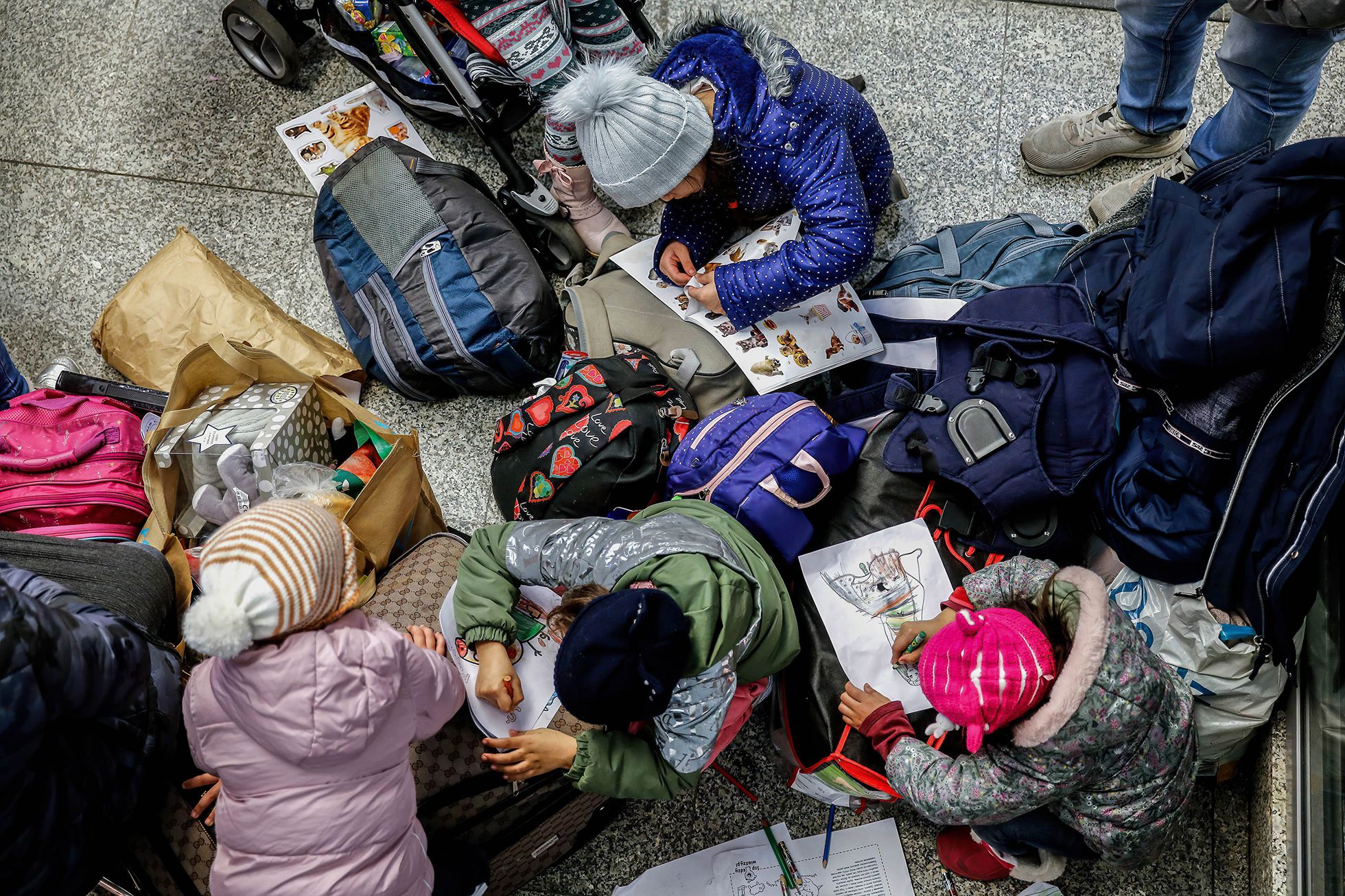 Женщины и дети — большинство обитателей краковского вокзала сейчас. Мужчин в возрасте от 18 до 60 лет среди беженцев практически нет — выезд из Украины им запретили на второй день войны, 25 февраля, после введения в стране военного положения.