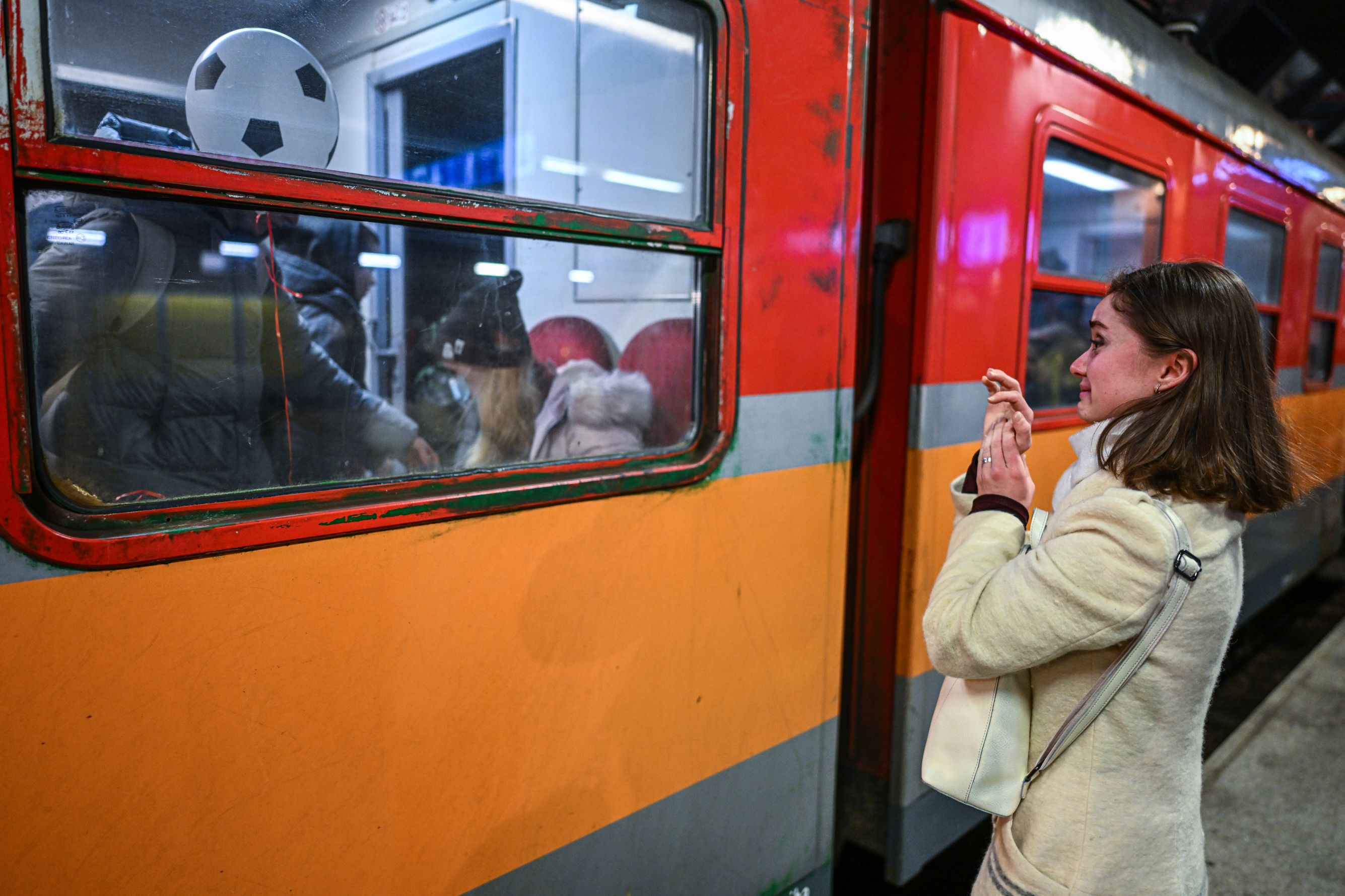 Из села Васильки Киевской области Вита бежала со своим ребенком, женой брата и тремя их детьми. Взобравшись на многочисленные сумки рядом с Витой, дети тихо играют с мягкими игрушками, которые раздают волонтеры на вокзале, или просто молча сидят. Сын девушки — самый старший из детей, светловолосый мальчик четырех лет — ест фруктовое пюре, которое ему тоже принесли волонтеры.
