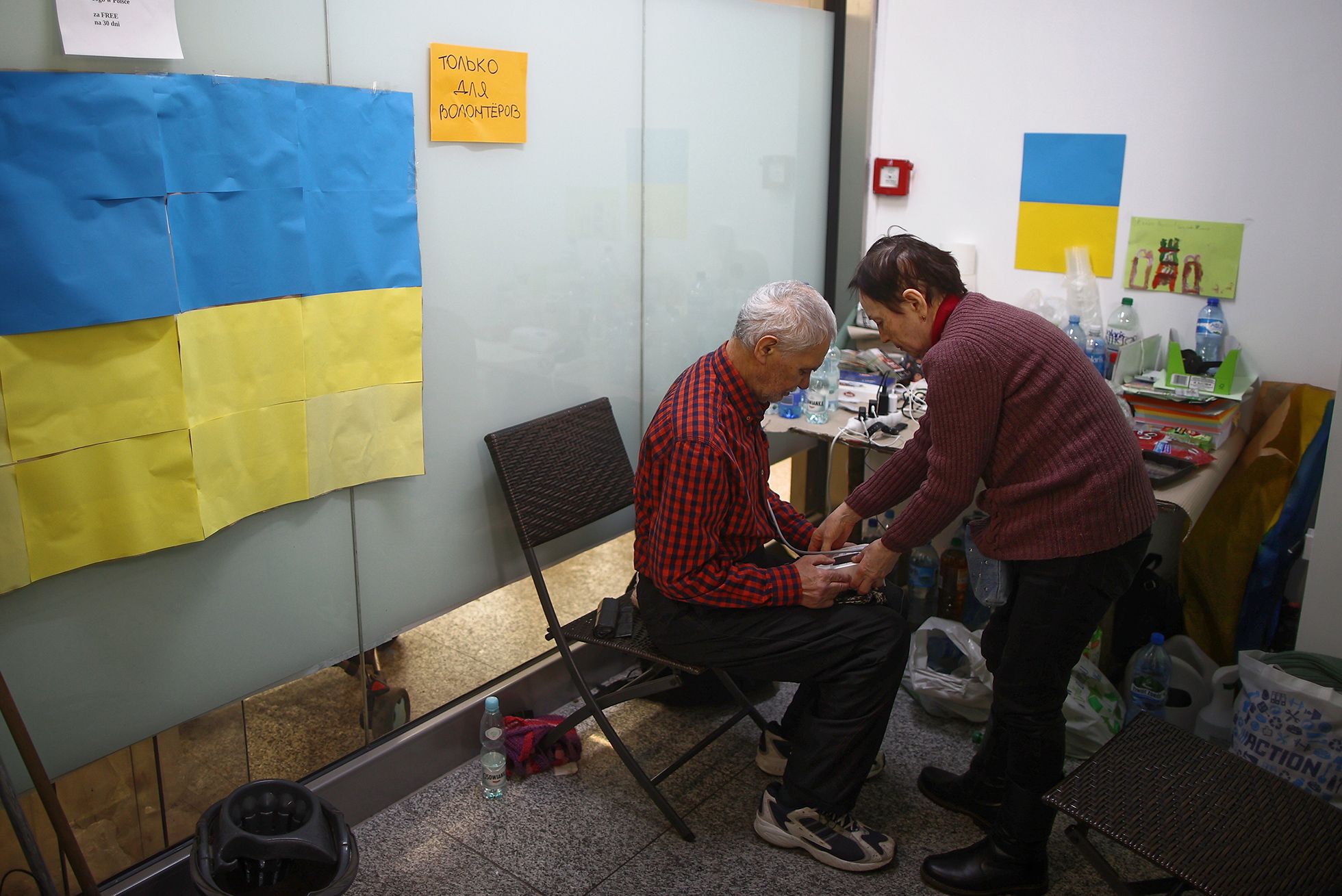 Сейчас многих из них привозят в пункт приема беженцев, открывшийся на окраине Пшемысля — ближайшего города к границе — в бывшем здании супермаркета Tesco. Парковка и подъезд к Tesco заставлены машинами. Чтобы отвезти куда-либо украинцев, водитель обязан зарегистрироваться, предоставив документы и указав номер машины, — это нужно, чтобы люди не терялись.