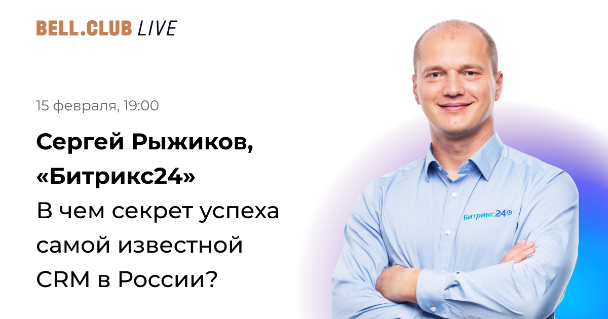 Сегодня вечером в прямом эфире на Bell.Club Live — Сергей Рыжиков, CEO «1С-Битрикс», сооснователь онлайн-сервиса для управления бизнесом «Битрикс24». Еще в 2010 году Сергей предположил, что в скором будущем все компании будут работать через интернет, и начал разрабатывать облачный сервис «Битрикс24». Сейчас каждая третья компания в России из рейтинга Forbes работает на «Битрикс24», а всего сервисом пользуются 10 млн компаний по всему миру — от метрополитена Стамбула до правительства Мексики.