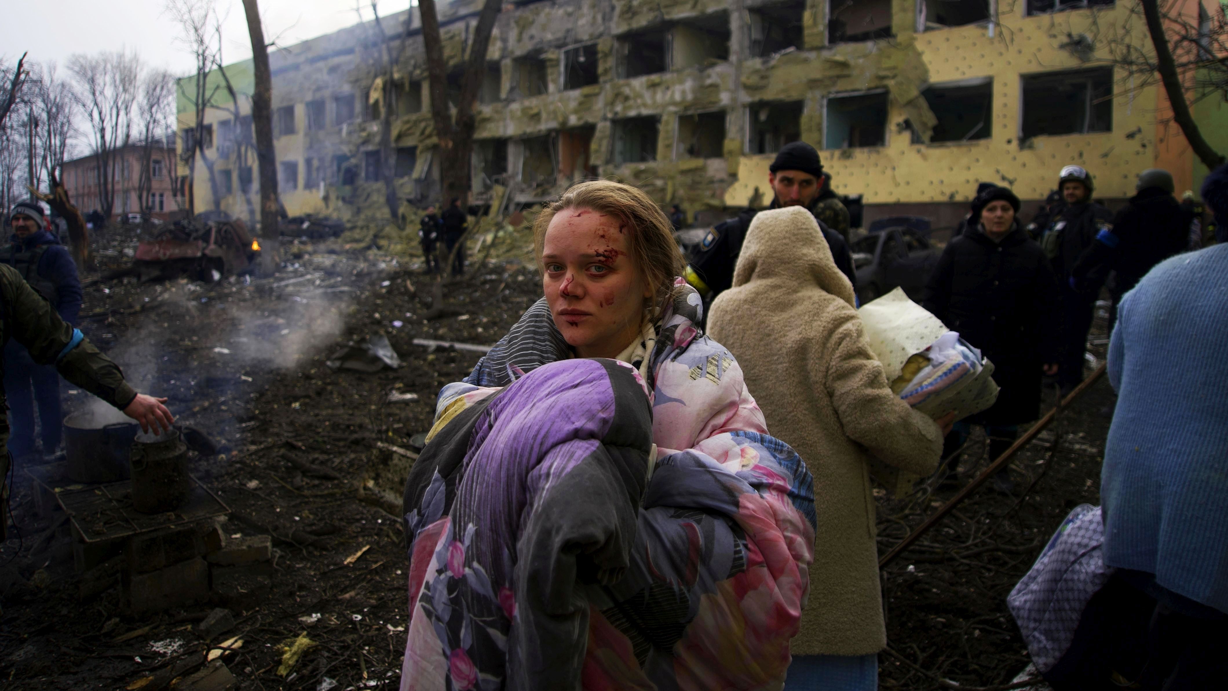 Обстрелы жилых районов ведутся с использованием артиллерии, реактивных систем залпового огня и баллистических ракет. Колонны бронетехники российской армии пытаются оцепить Киев и несколько областных центров недалеко от российской границы.