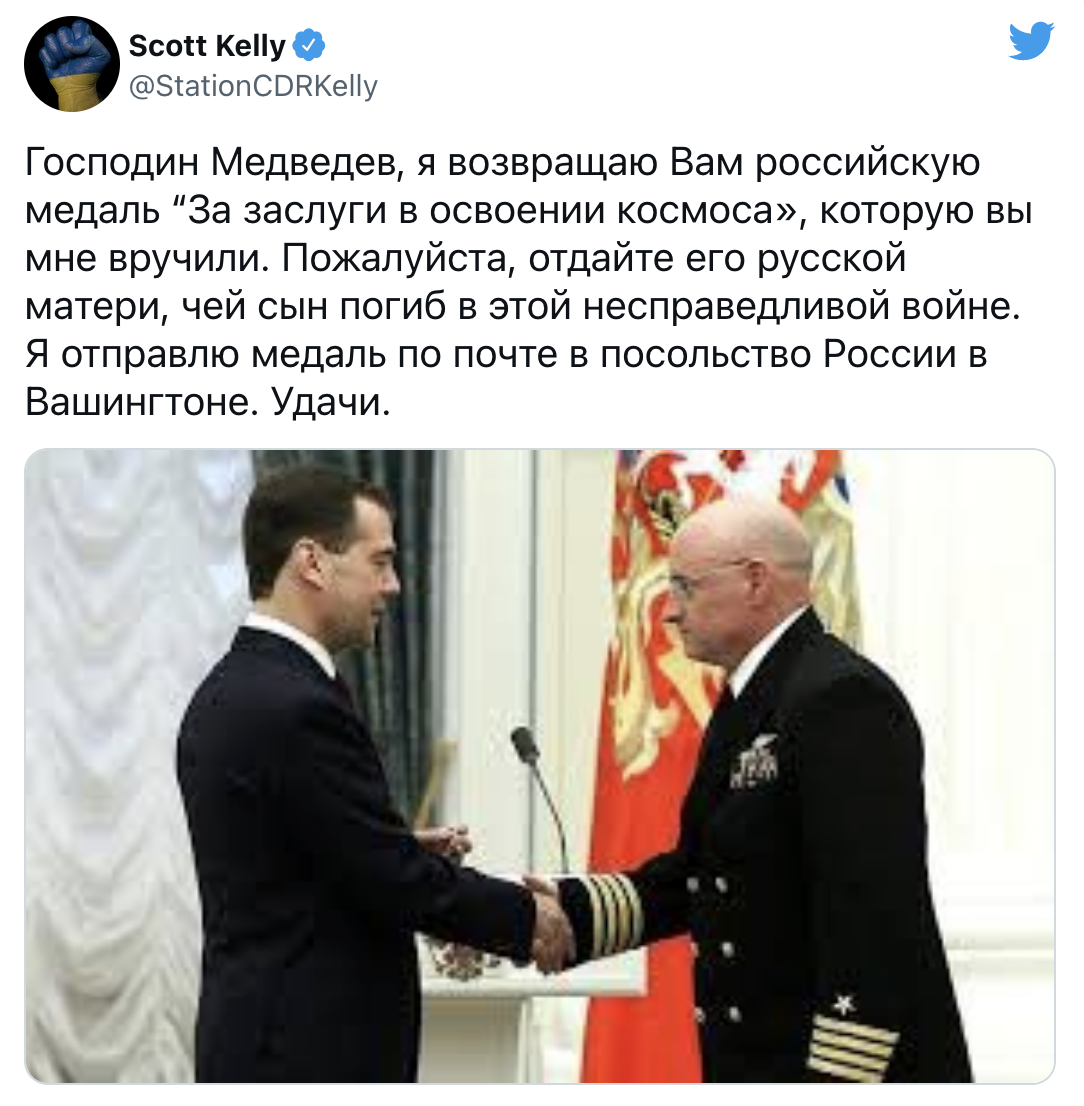 «Душа болит, когда две страны уничтожаются по воле одного человека». Астронавт Скотт Келли объясняет, почему спорит на русском в твиттере