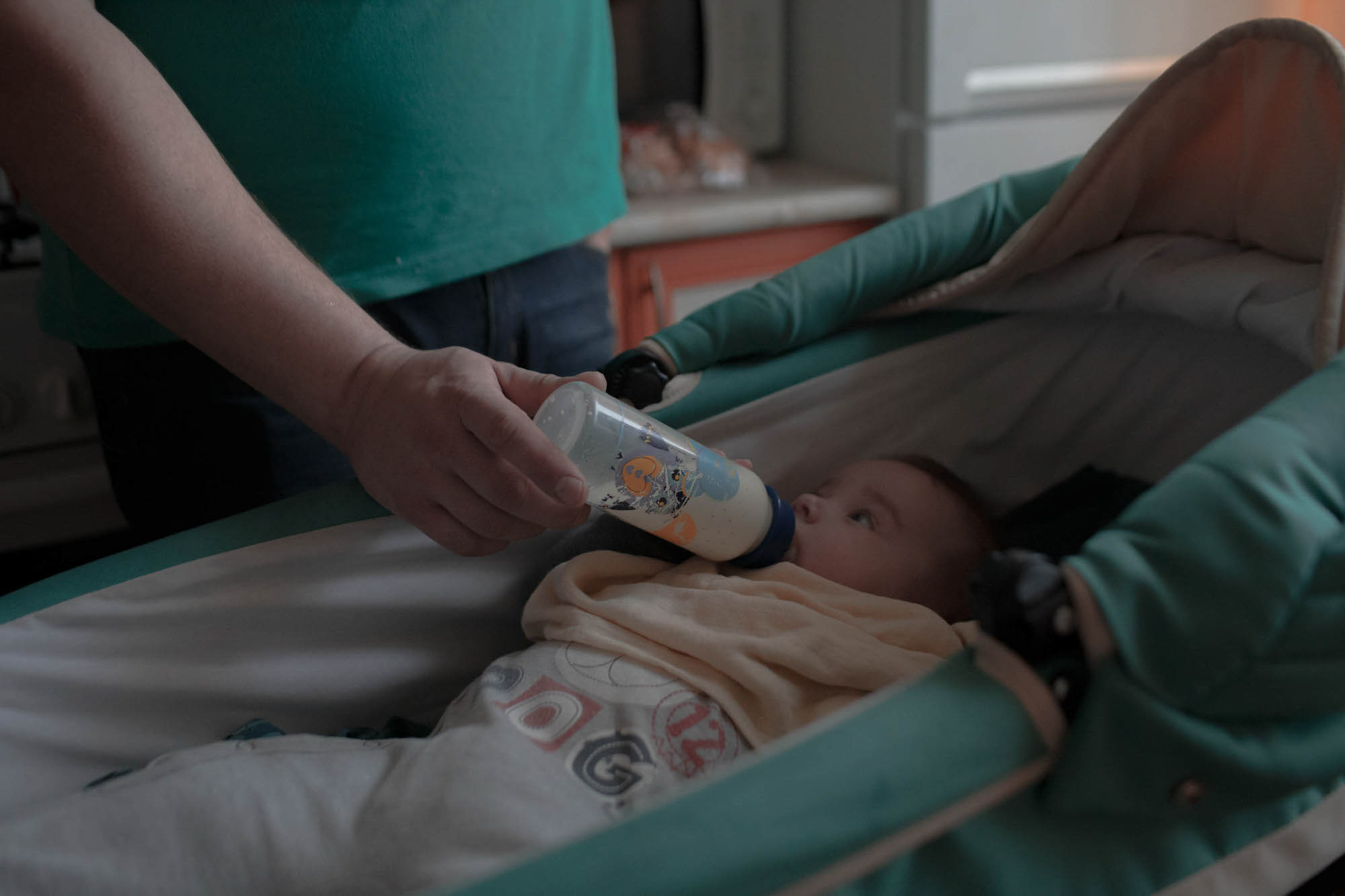 Алексей кормит Анфису из бутылочки. Анфису кормят смесью с рождения: из-за лечения Даше нельзя кормить ребенка грудным молоком. Спустя несколько часов после рождения Анфисы Даша принимала препараты для подавления лактации. Брянск