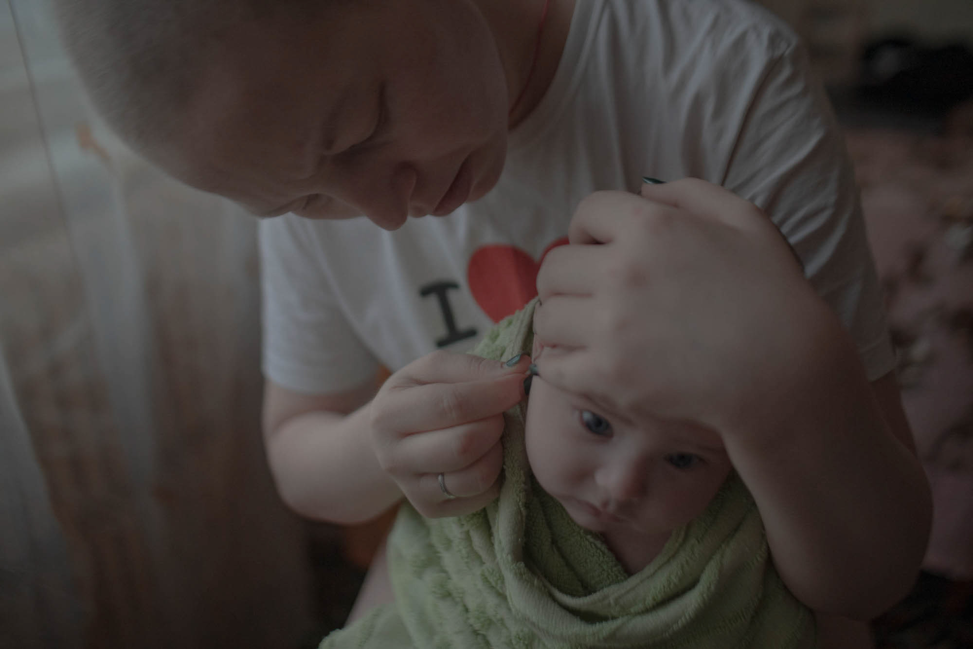Алексей надевает подгузник на Анфису. Алексей заботится о детях, когда Даша уезжает в Москву на лечение. Брянск