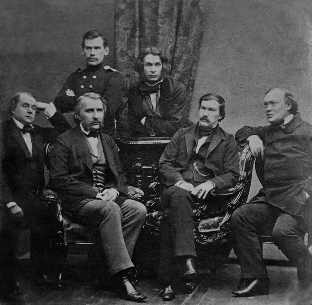 Групповой портрет русских писателей — членов редколлегии журнала «Современник». Иван Гончаров, Иван Тургенев, Лев Толстой, Дмитрий Григорович, Александр Дружинин и Александр Островский.