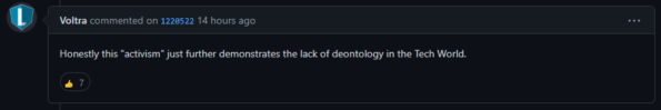Пользователи начали замечать и другие формы подобного «протеста», и собирать их в списки. После освещения ситуации некоторые разработчики начали откатывать изменения до безопасных версий кода.