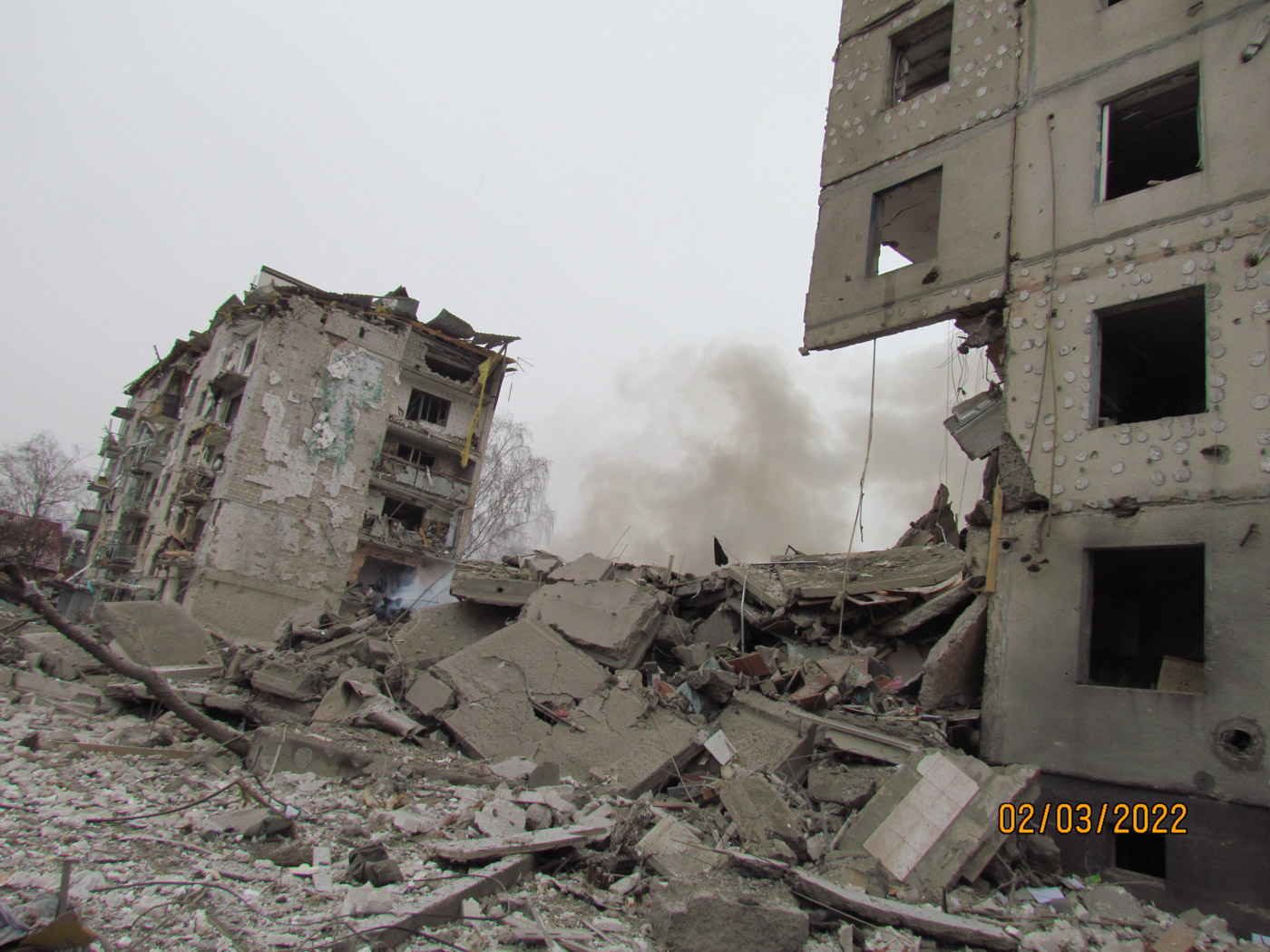 Я смотрю, а Круга нет после авиаударов, все снесли. Хорошо, что дочь с моим внуком ушли к родственникам ее мужа в частный сектор. Квартиры их просто нет больше. Там же стояла подбитая техника российская. Я все снял и стал двигаться в сторону дома, где меня жена ждала. С обеда снова пошли колонны через Бородянку. А к вечеру раздался звук самолета, мы попадали все на пол, взрывной волной выбило стекло в хате. Было три таких авиаудара — один за другим. Каждый разом мы падали на пол и молились Богу.