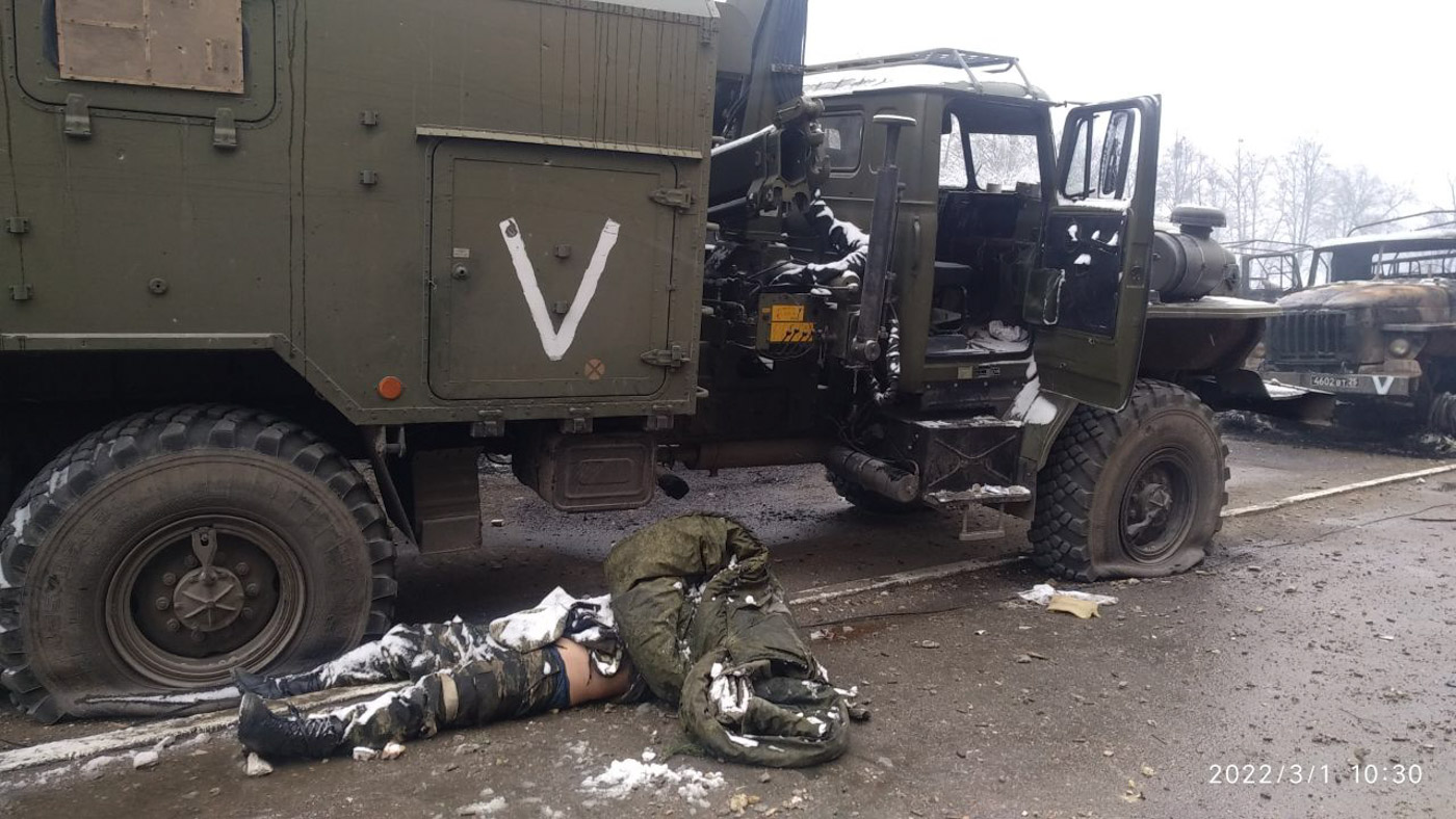 27-го февраля через Бородянку пошла первая танковая колонна со стороны Иванково, из Белоруссии. Это были российские войска, похожи на бурятов. Я снимал их из окна, у меня хороший зум, видны лица. На танках у них была буква V. Наши потом говорили, что у тех, кто заходил со стороны Белоруссии, было обозначение V, а у тех, кто со стороны России, — Z.