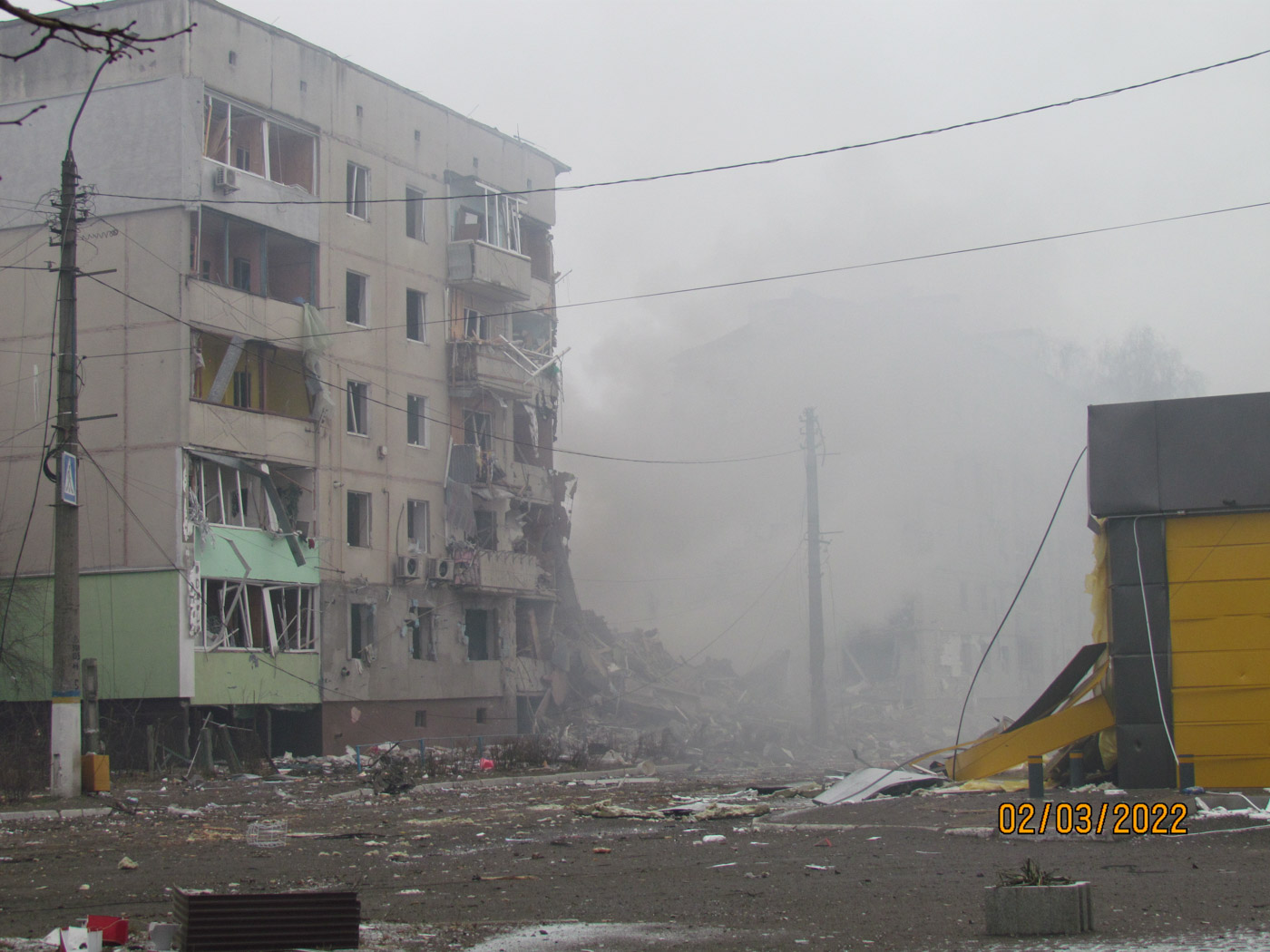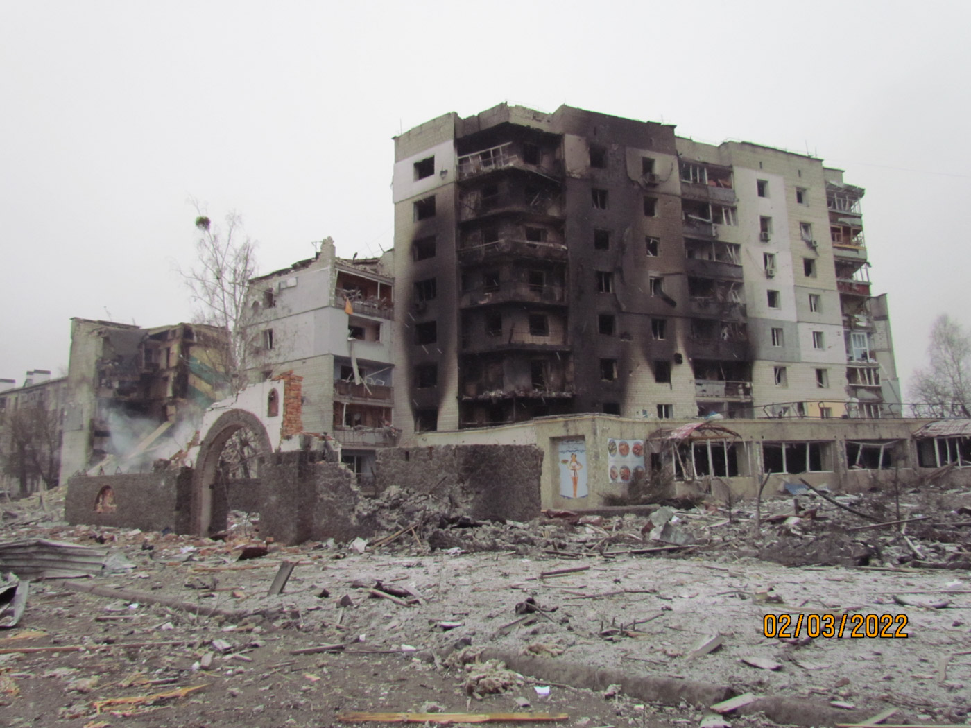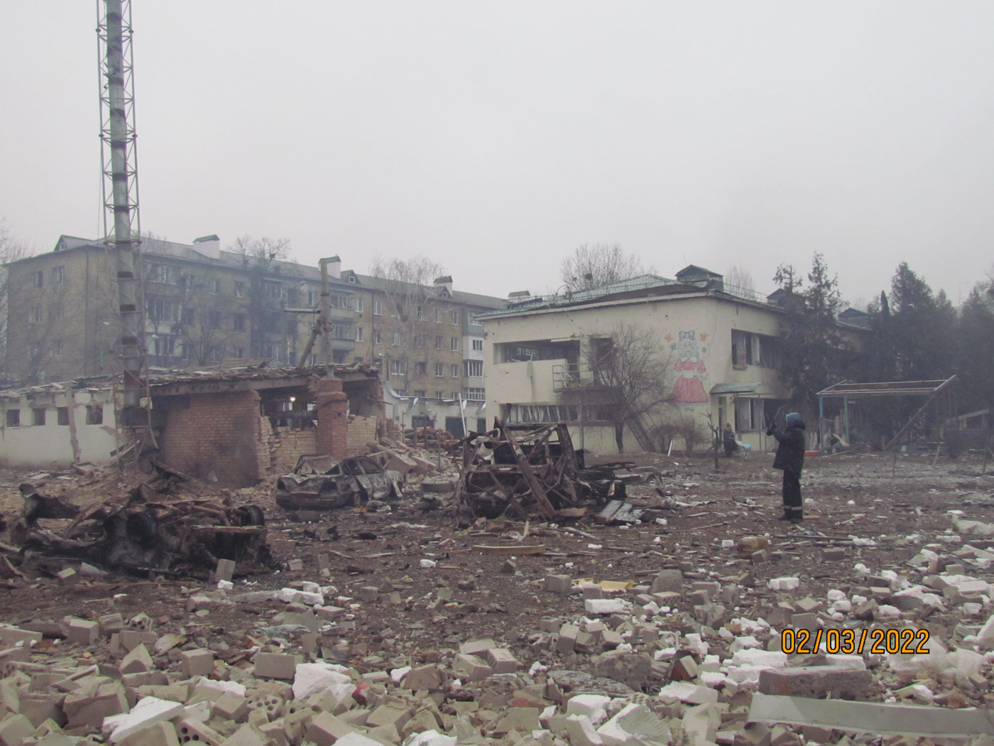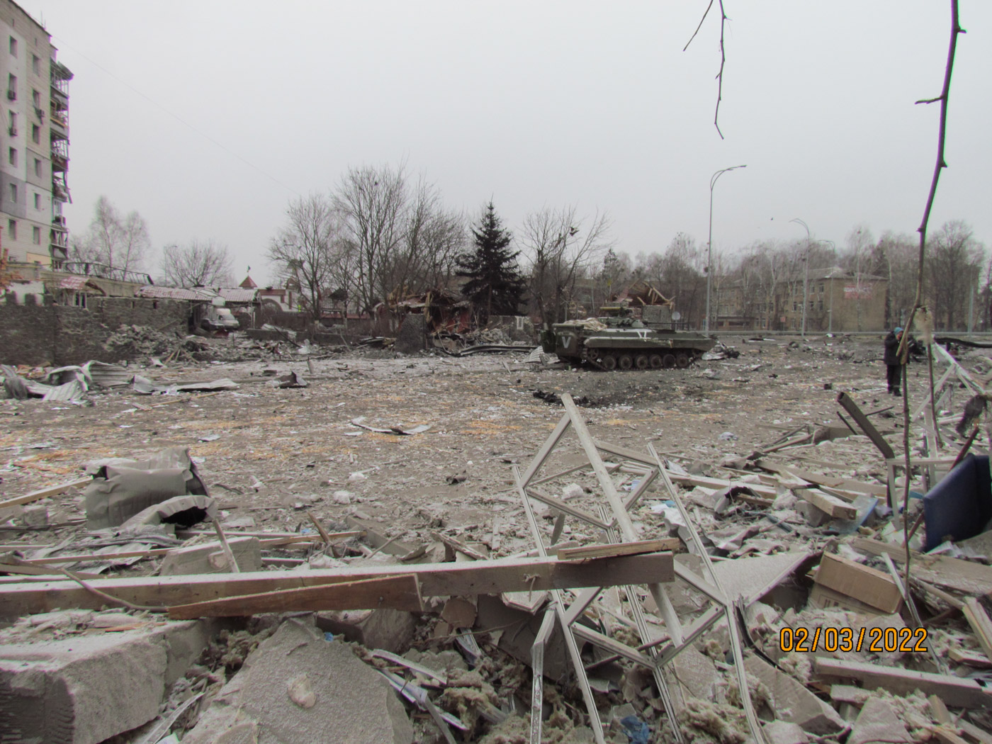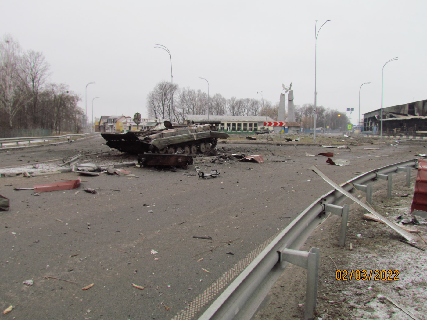 1 марта вышел на улицу и снял Бородянку: было очень много разрушений. Я отправил съемку и с 1 марта уже находился постоянно рядом с семьей: в доме у наших знакомых. 2 марта с обеда снова пошли колонны. В тот день утром я вышел на улицу поснимать, дошел до Круга — там главная дорога разветвляется на несколько — на Макаров, на Киев, на Ковель. У меня дочь живет на этом Круге.