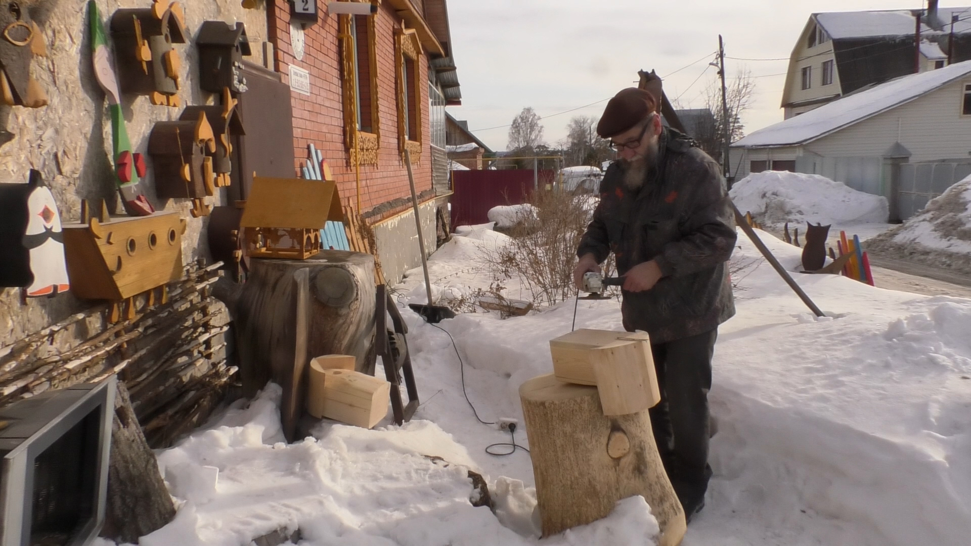В Томске Станислав Кармакских известен как "скворечных дел мастер". Во время беседы ему позвонили.