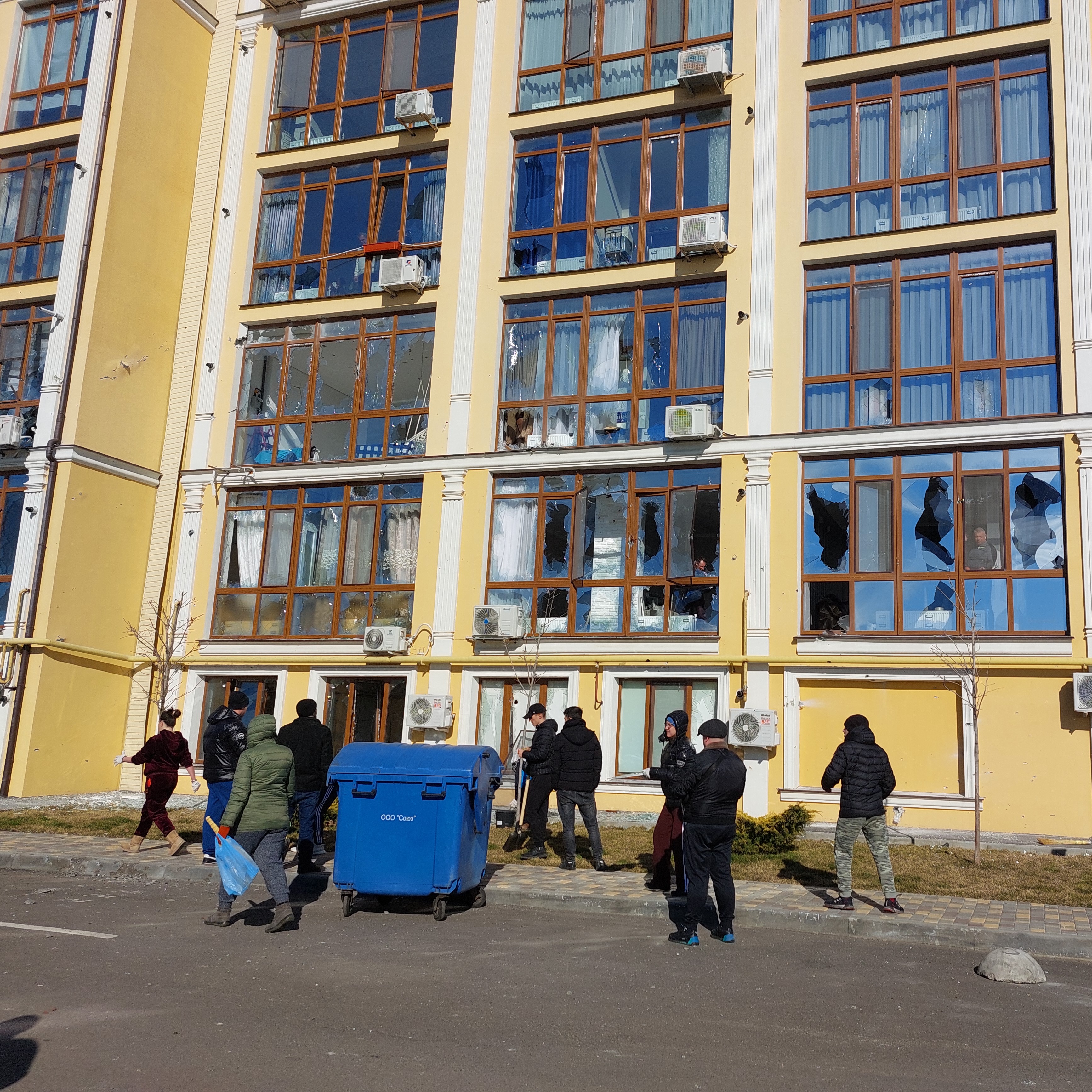 Местные жители скрывались в крытом паркинге жилого комплекса – воздушная тревога сработала примерно за полчаса до попаданий.