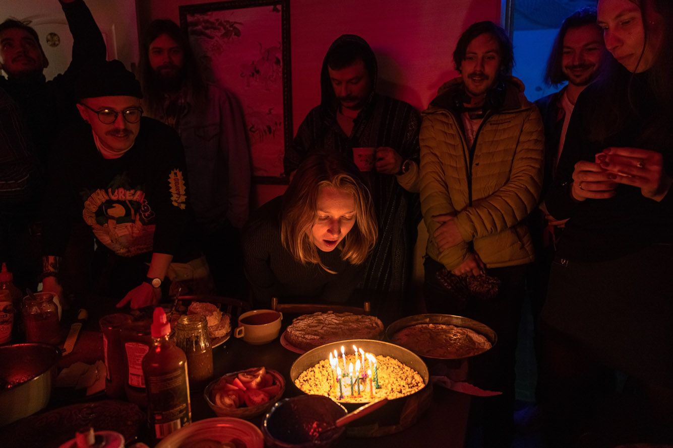 Roman Pilipey / EPA / Scanpix / LETA День рождения в художественной студии в Киеве, которая с началом войны превратилась в бомбоубежище. Студия находится в подвале, который художники еще до вторжения российских войск в Украину отремонтировали и приспособили под свои нужды. Теперь они живут там и занимаются волонтерской работой, помогая украинской армии