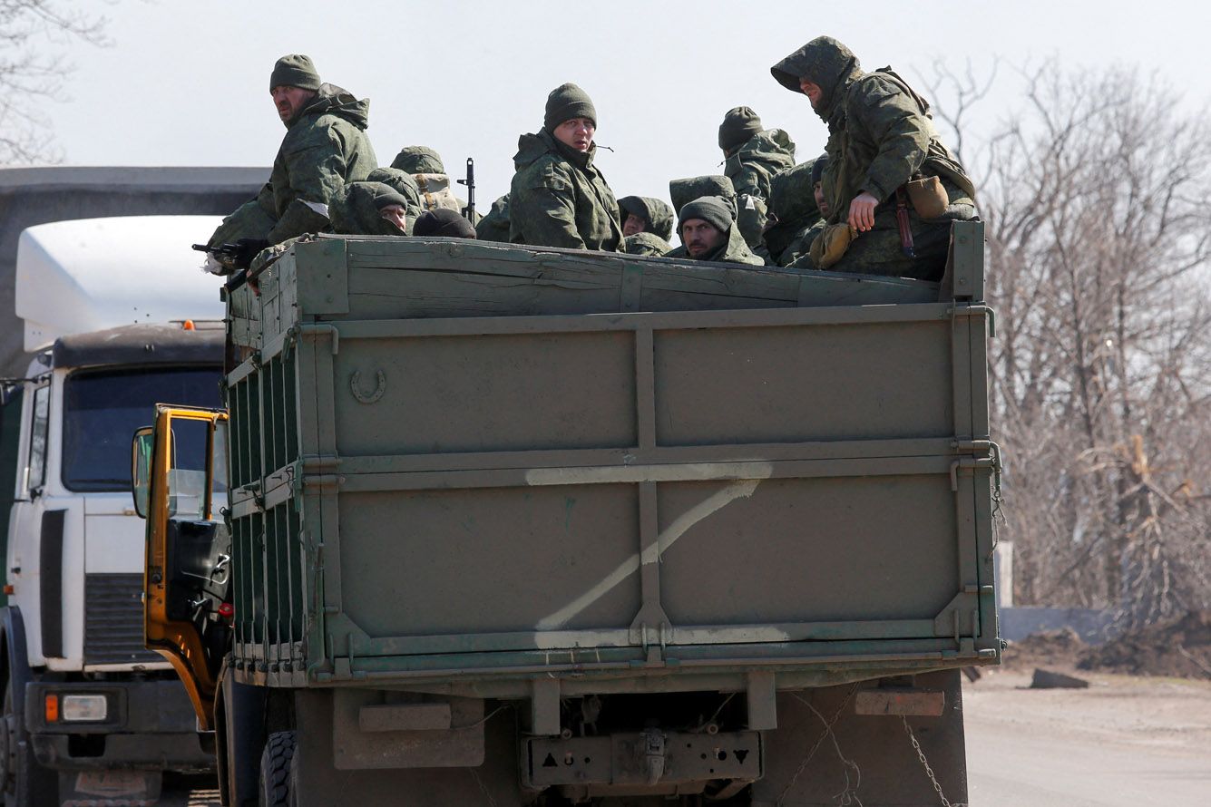 Alexander Ermochenko / Reuters / Scanpix / LETA Бойцы из пророссийского отряда в помеченном буквой Z грузовике в окрестностях Мариуполя