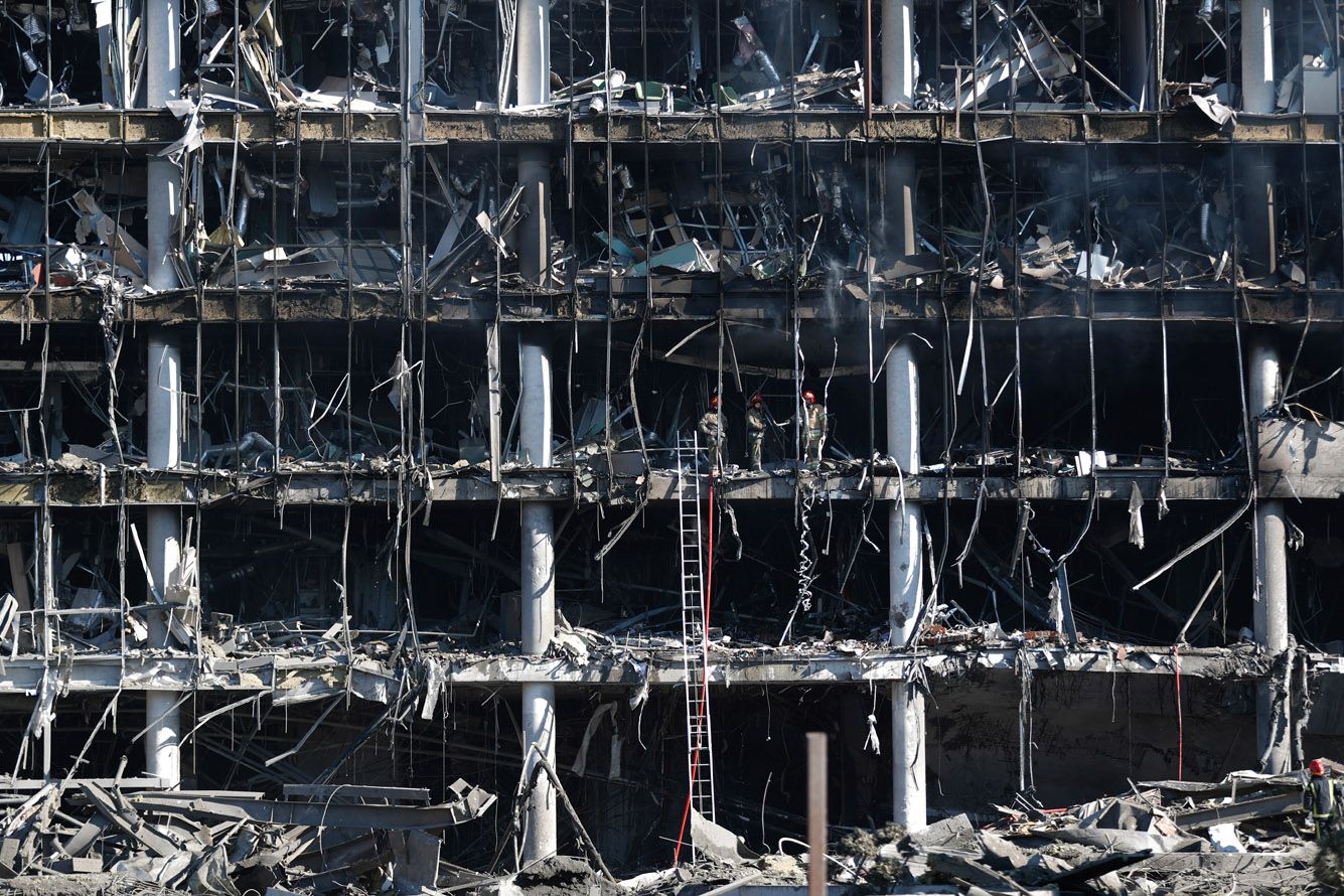 Atef Safadi / EPA / Scanpix / LETA Так выглядит торговый центр после ракетного удара. Минобороны РФ утверждает, что он не работал и что там хранились боеприпасы
