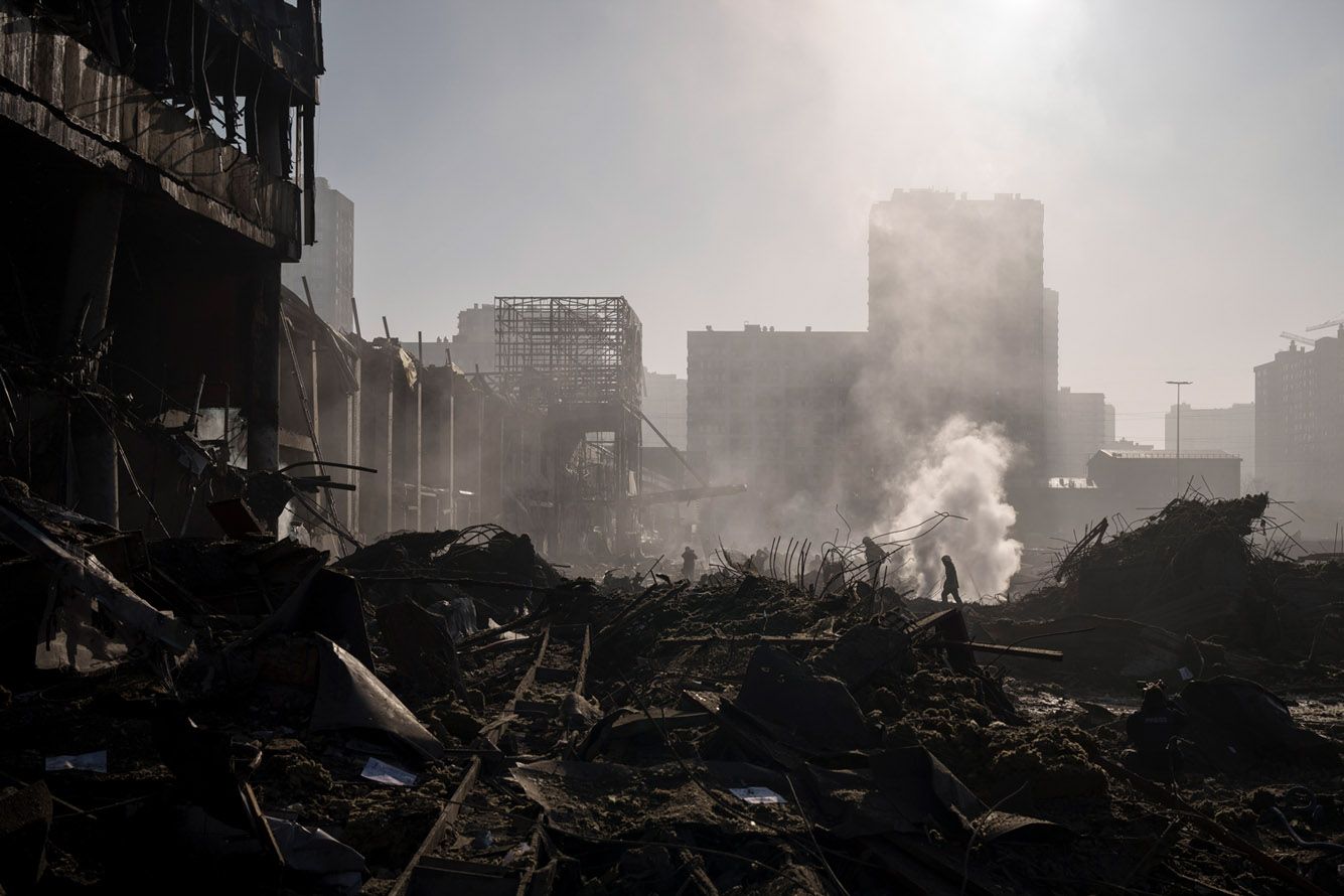 Война продолжается уже двадцать шесть дней. Российская армия продолжает обстреливать Киев — сегодня удары пришлись на торговый центр в Подольском районе столицы. Минобороны РФ заявило, что он не работал и что там хранились боеприпасы. По данным генпрокурора Украины, в результате обстрела торгового центра погибли восемь человек. В Харькове во время обстрела города российскими военными погиб 96-летний Борис Романченко, прошедший немецкие концлагеря. В Херсоне митинг протеста против российского вторжения забросали светошумовыми гранатами. Одесса, по данным местных властей, ночью подверглась обстрелу с российских кораблей. Мы собрали главные фотографии этого дня.
