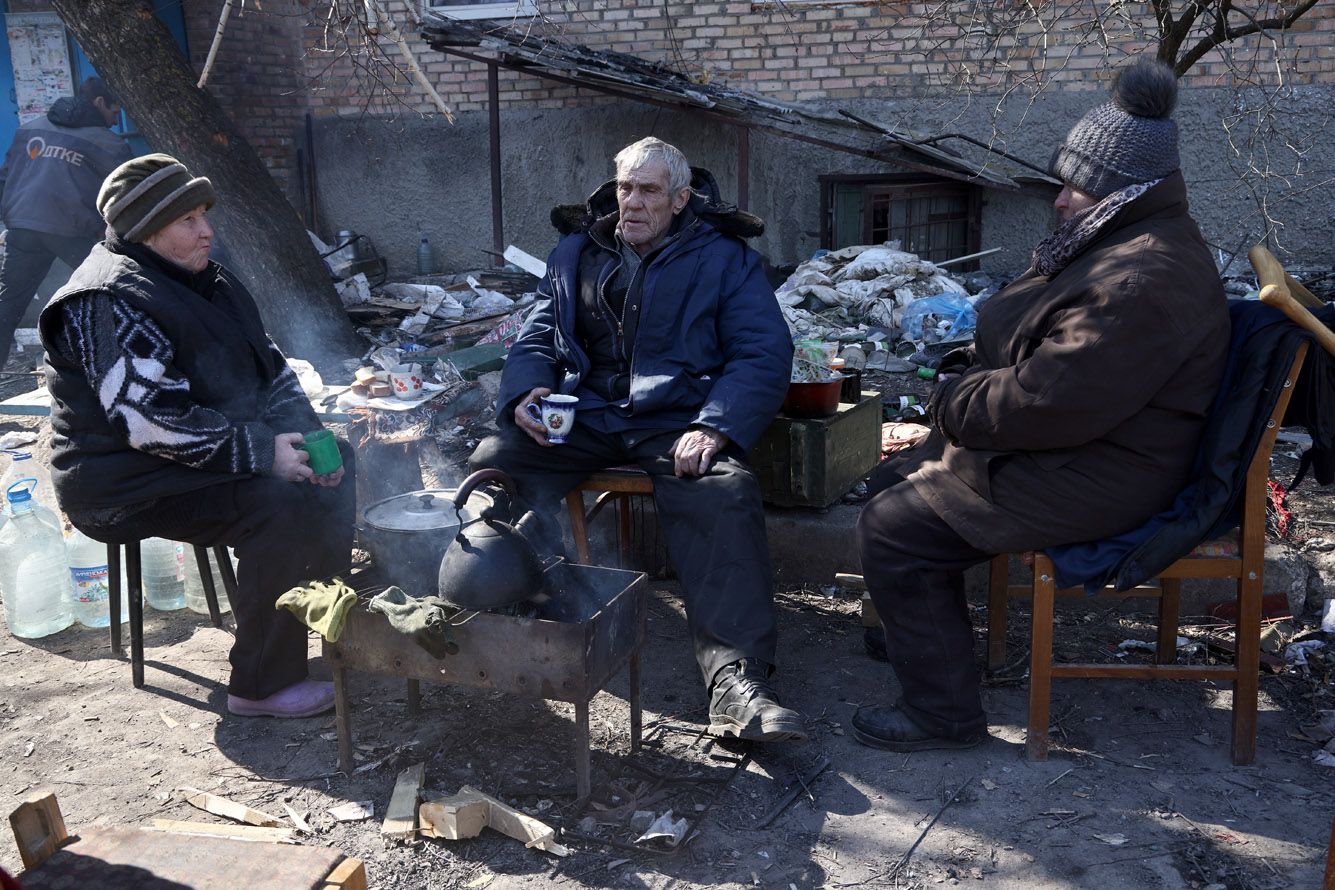 Михаил Терещенко / Scanpix / LETA Жители Волновахи готовят на костре прямо на улицах практически уничтоженного российскими войсками города