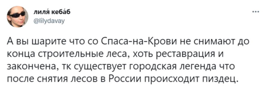 В Украине — бои, в России — экономический кризис, а Спас на Крови стоит почти без лесов. Совпадение? Есть легенда, что полное освобождение собора от строительных конструкций обернется катастрофой. Последний раз леса с храма снимали в конце 1990-го. ☝️