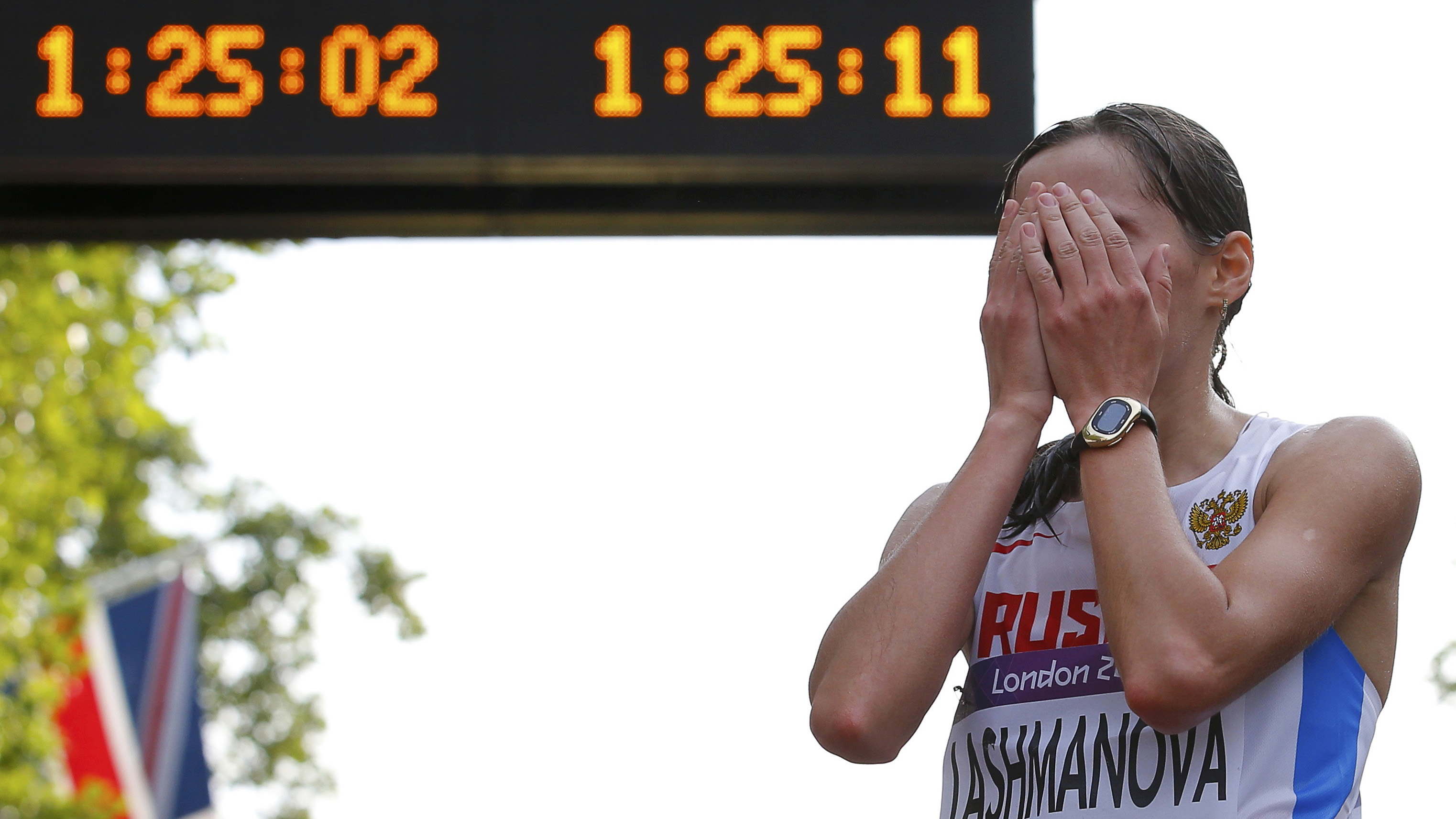 На дистанции в Лондоне спортсменка установила мировой рекорд, пройдя 20 километров за 1 час 25 минут и 2 секунды. Решение о дисквалификации Лашмановой принято после изучения данных московской антидопинговой лаборатории. Аннулированы все результаты спортсменки, показанные в период с 18 февраля 2012 по 3 января 2014 года.