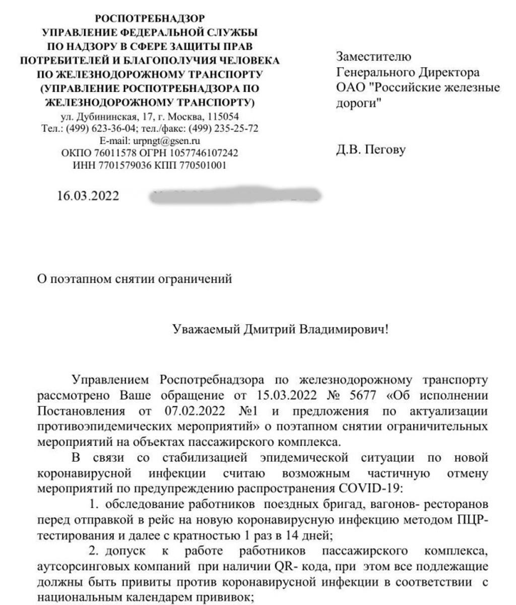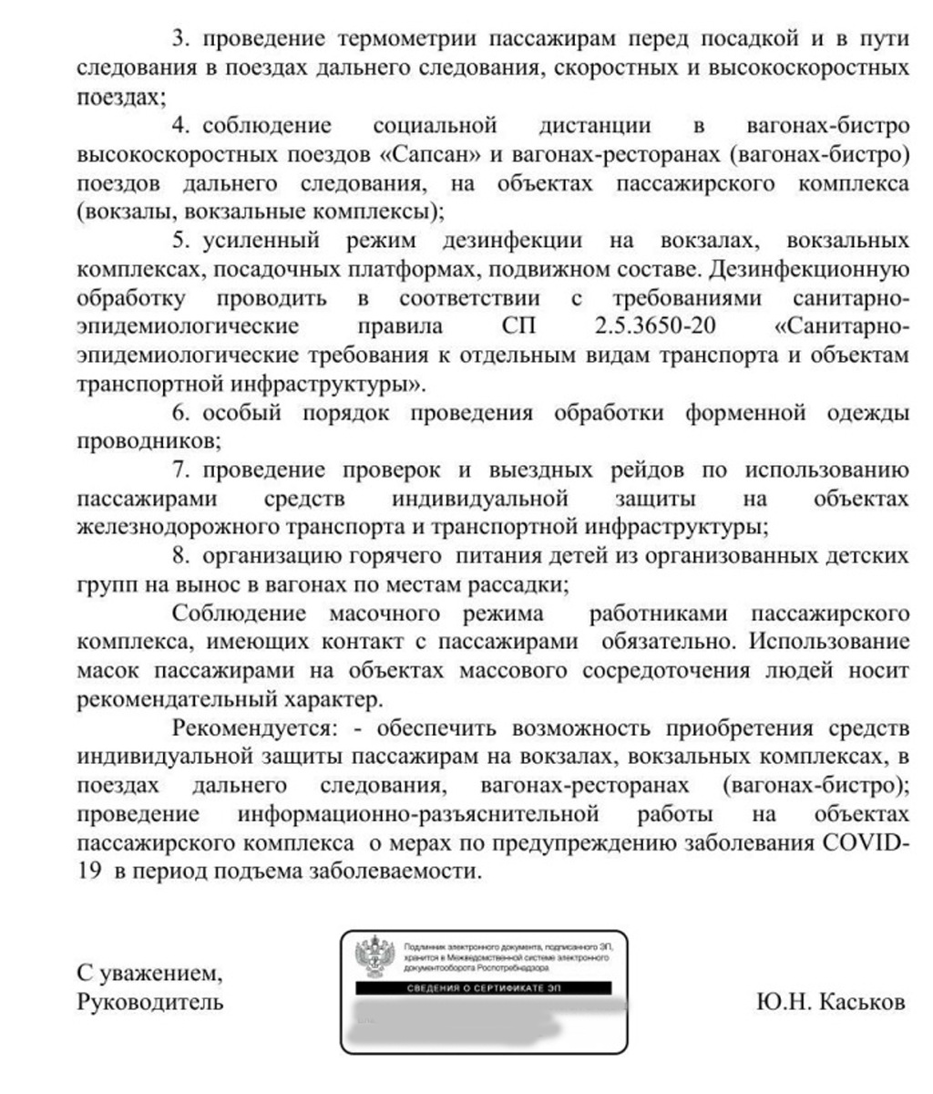 UPD (22:07) «Ношение масок в ж/д-транспорте остается обязательным, сообщили в транспортном управлении Роспотребнадзора», передает ТАСС. При этом с сайта РЖД пропало письмо Роспотребнадзора. Но редакция успела его сохранить.