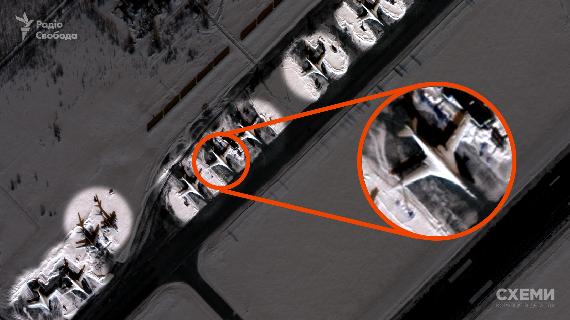 «Схемы» сосредоточились на аэродромах, которые российские военно-космические силы используют наиболее активно и которые расположены на территориях как России, так и Беларуси, а также оккупированного Крыма.
