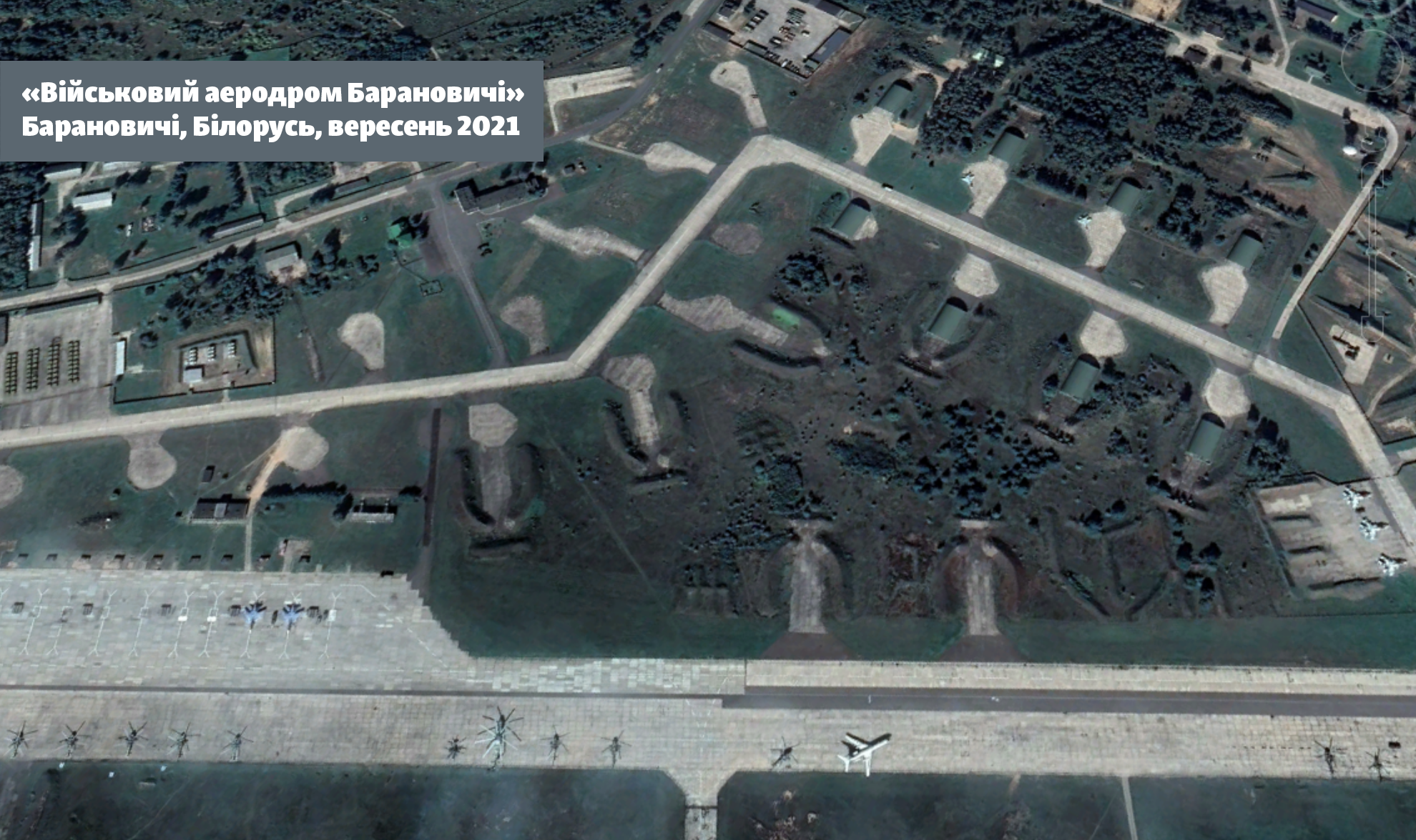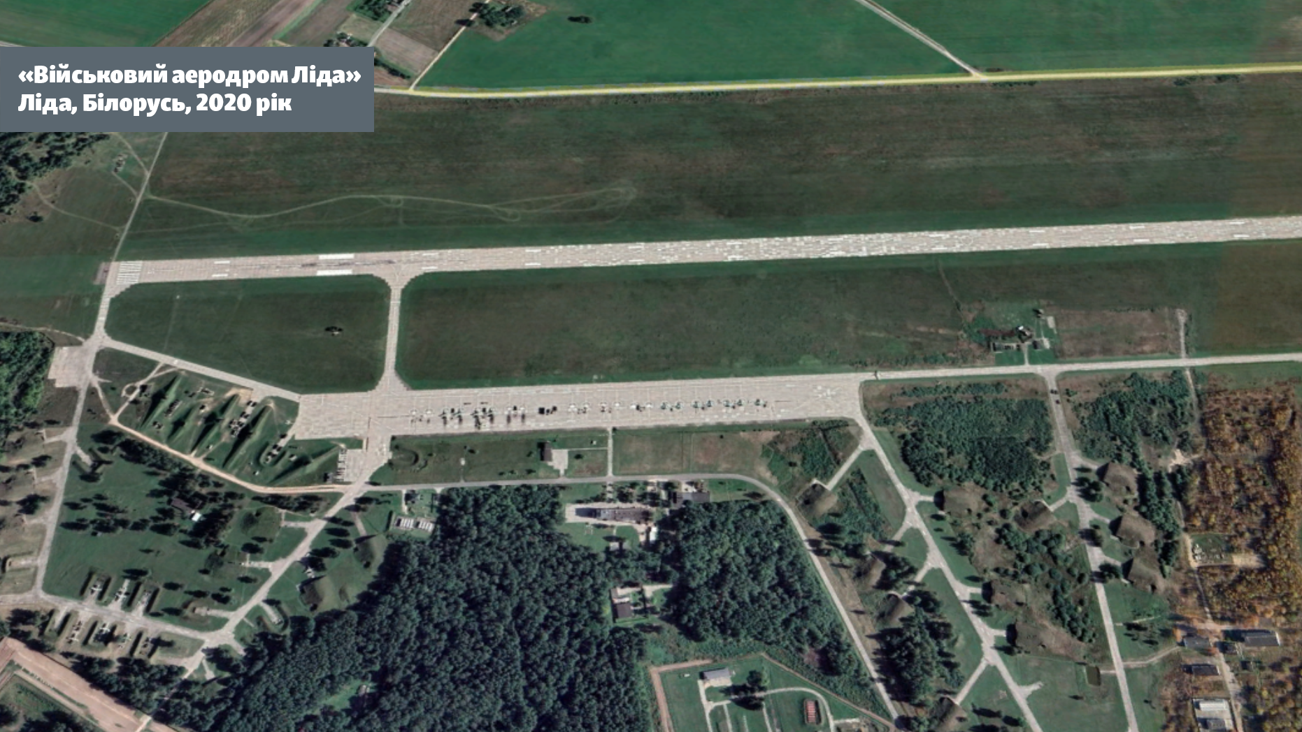 Обычно на этом аэродроме стоят силы 116-й гвардейской штурмовой базы ВВС Беларуси. Приблизительно такая ситуация видна на снимке за сентябрь 2020 года от Maxar для GoogleMaps: более 20 военных самолетов, часть из которых может быть спрятана в специальных подземных ангарах.