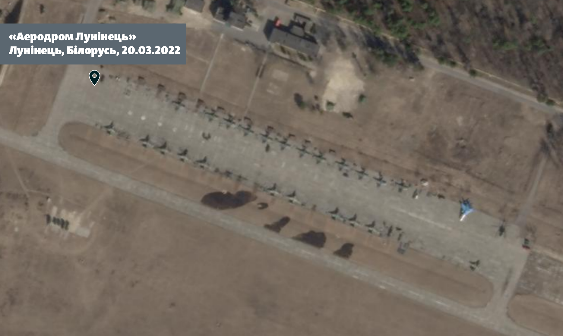 Все изменилось после того, как аэродром Лунинец, как и Барановичи, решили использовать в качестве дополнительного во время «учений» военных. Теперь здесь разместилось по меньшей мере 20 самолетов Су-25СМ, а также есть как минимум один бомбардировщик Су-34.