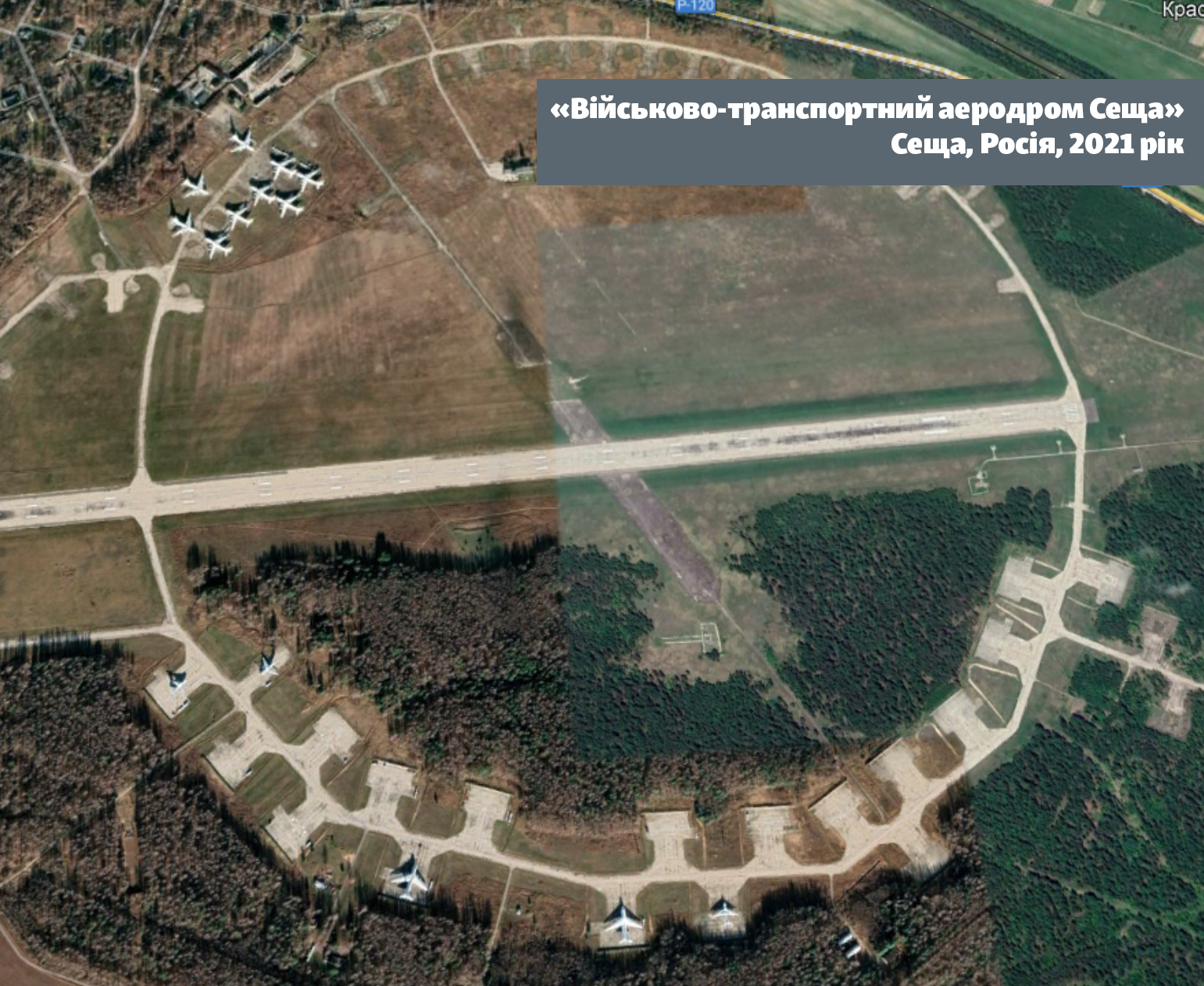 Согласно снимкам со спутника, до начала полномасштабного вторжения России в Украину, этот необычный по форме круглый аэродром в Брянской области служил преимущественно для транспортных самолетов ИЛ-76 и АН-124-100 («Руслан»). Приблизительно за месяц до начала вторжения России в Украину на нем начали появляться бомбардировщики и истребители.