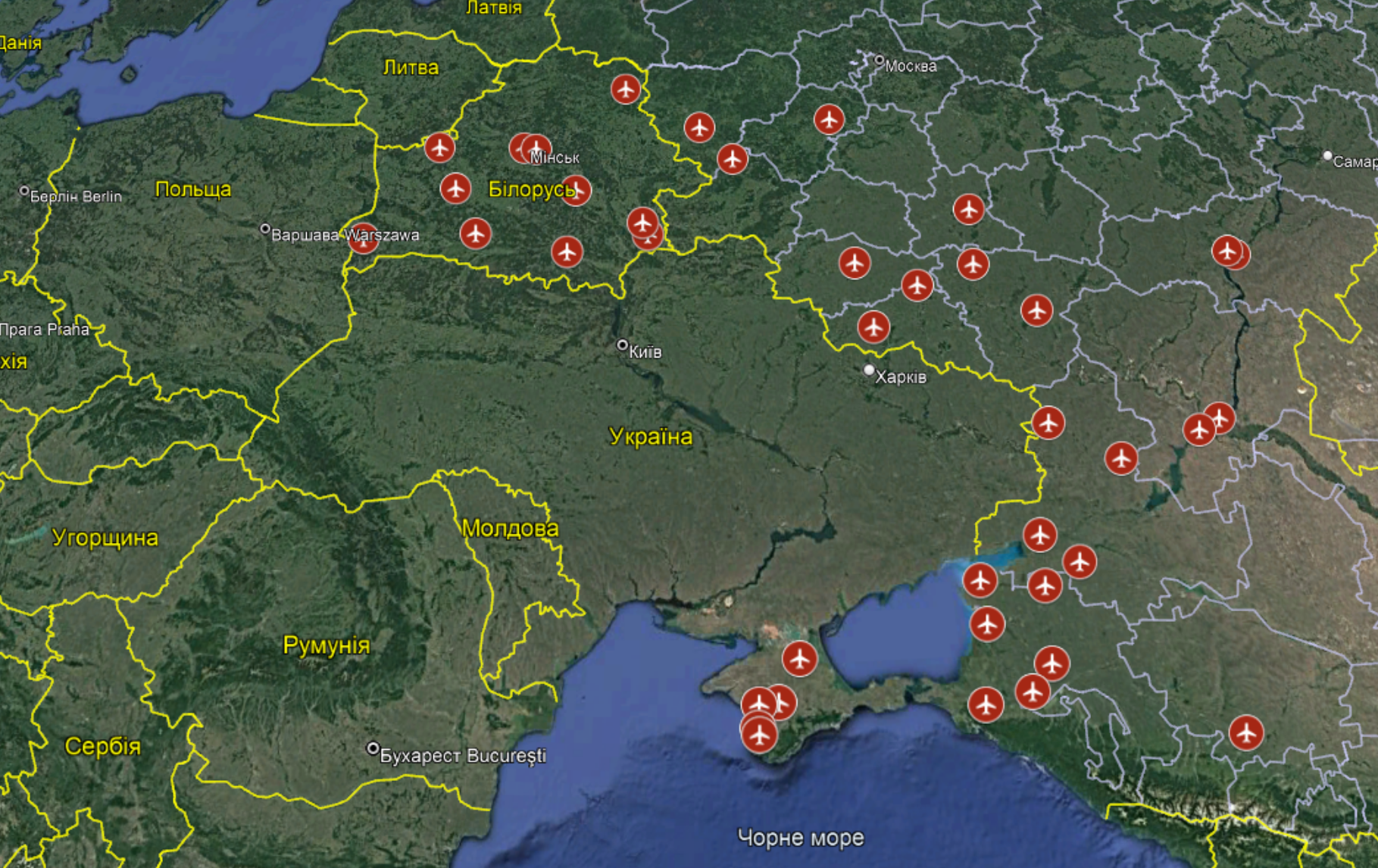 В Беларуси такие аэродромы расположены у городов Минск, Мозырь, Гомель, Брест, Витебск и Бобруйск.