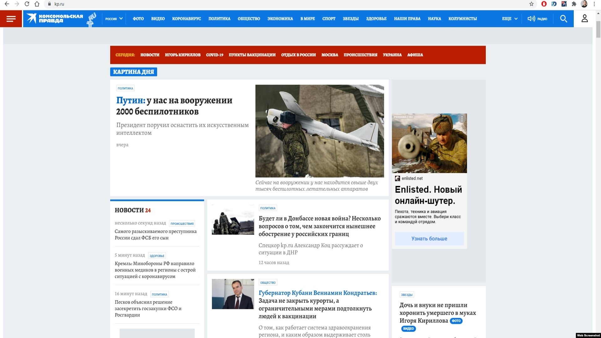 Спикер Кремля Дмитрий Песков заявил журналистам во вторник, что не может комментировать инцидент с «Комсомольской правдой», заявив, что это вопрос самой газеты. Он сказал, что не располагает информацией о числе погибших и раненых российских военных.