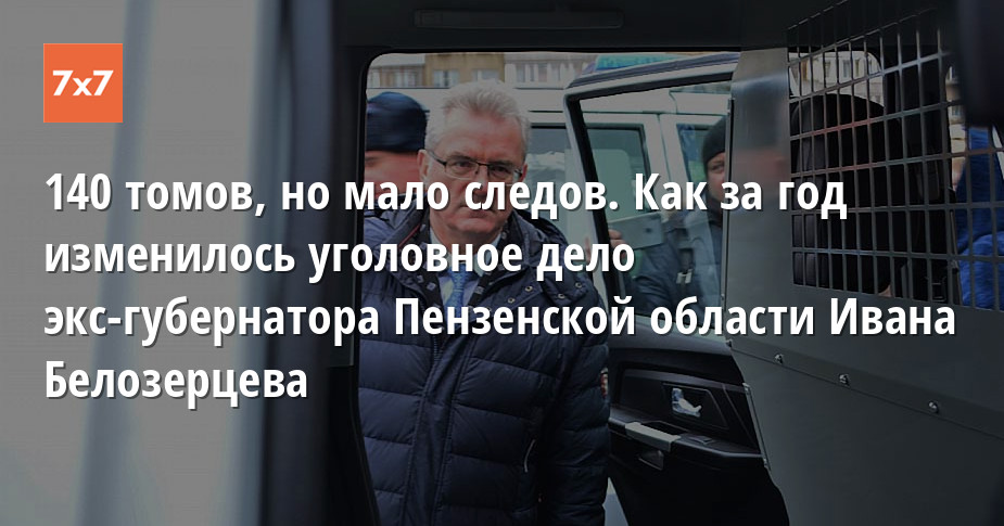 Бывший губернатор Пензенской области Иван Белозерцев провел год в СИЗО «Матросская тишина». Следственный комитет РФ возбудил против него уголовное дело о получении взятки от олигарха Бориса Шпигеля, которому экс-глава региона якобы помогал заключать госконтракты. В обзоре «7х7» — как за год изменилось это уголовное дело и чем оно отличается от типичных коррупционных дел.