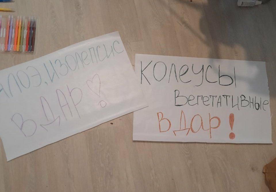 Согласно , 20 марта девушки вышли на Соборную площадь Белгорода с плакатами «Колеусы вегетативные в дар» и «Изолепсис, алоэ в дар». В документах также сказано, что Россинская и Егорова были «предупреждены сотрудниками ОВД о нарушении порядка проведения публичных мероприятий и необходимости прекратить участие в пикетировании», но не выполнили «законного требования сотрудников ОВД».