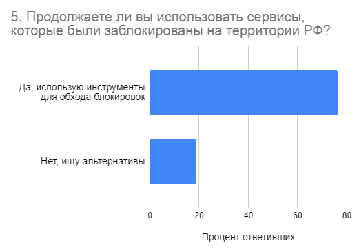 Опрошенные узнают новости из Telegram и продолжают пользоваться подписками на заблокированные сервисы