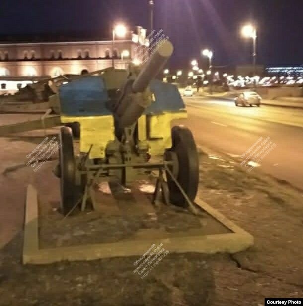 Житель Петербурга раскрасил в цвета украинского флага гаубицы в музее. Его арестовали