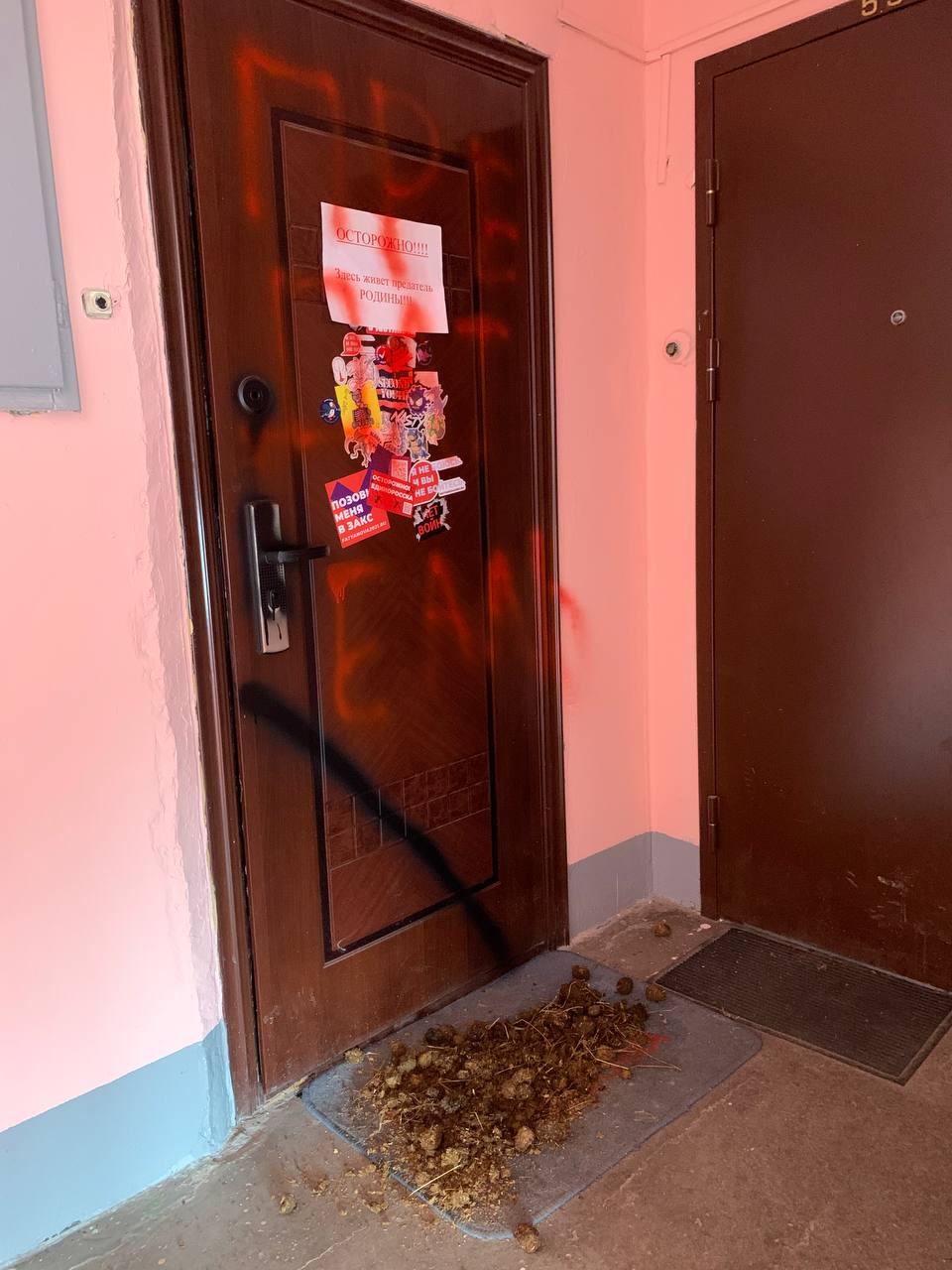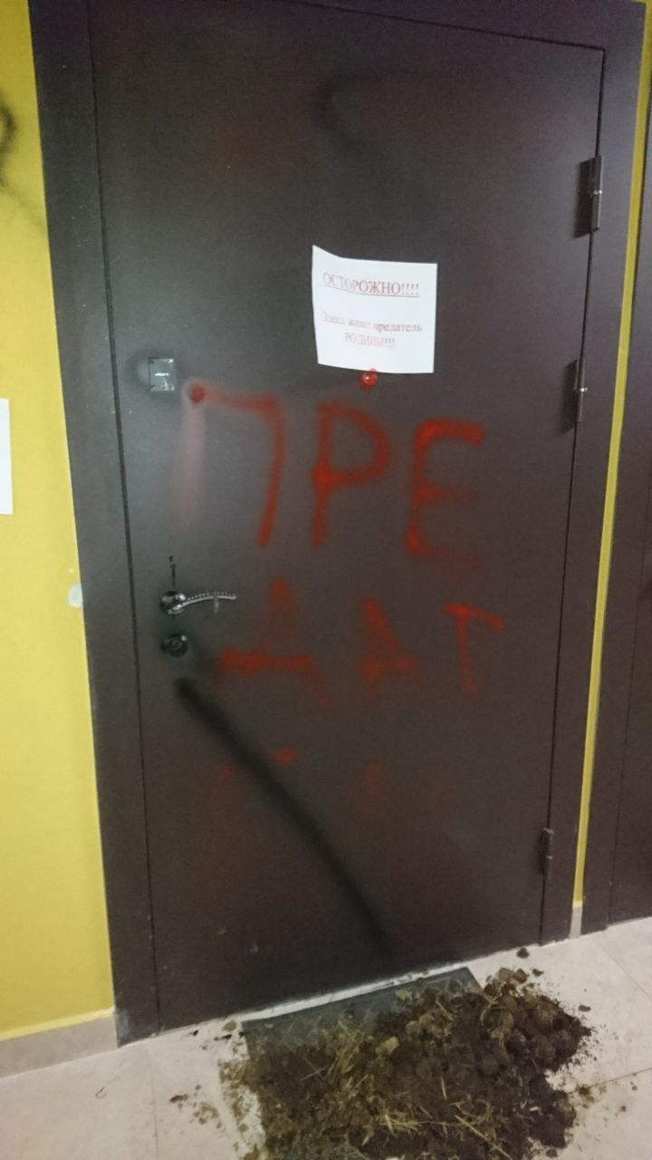 Двум петербургским активисткам под дверями оставили кучи навоза, а на самих дверях написали «предатель». Об этом сообщают сами девушки и SOTA.