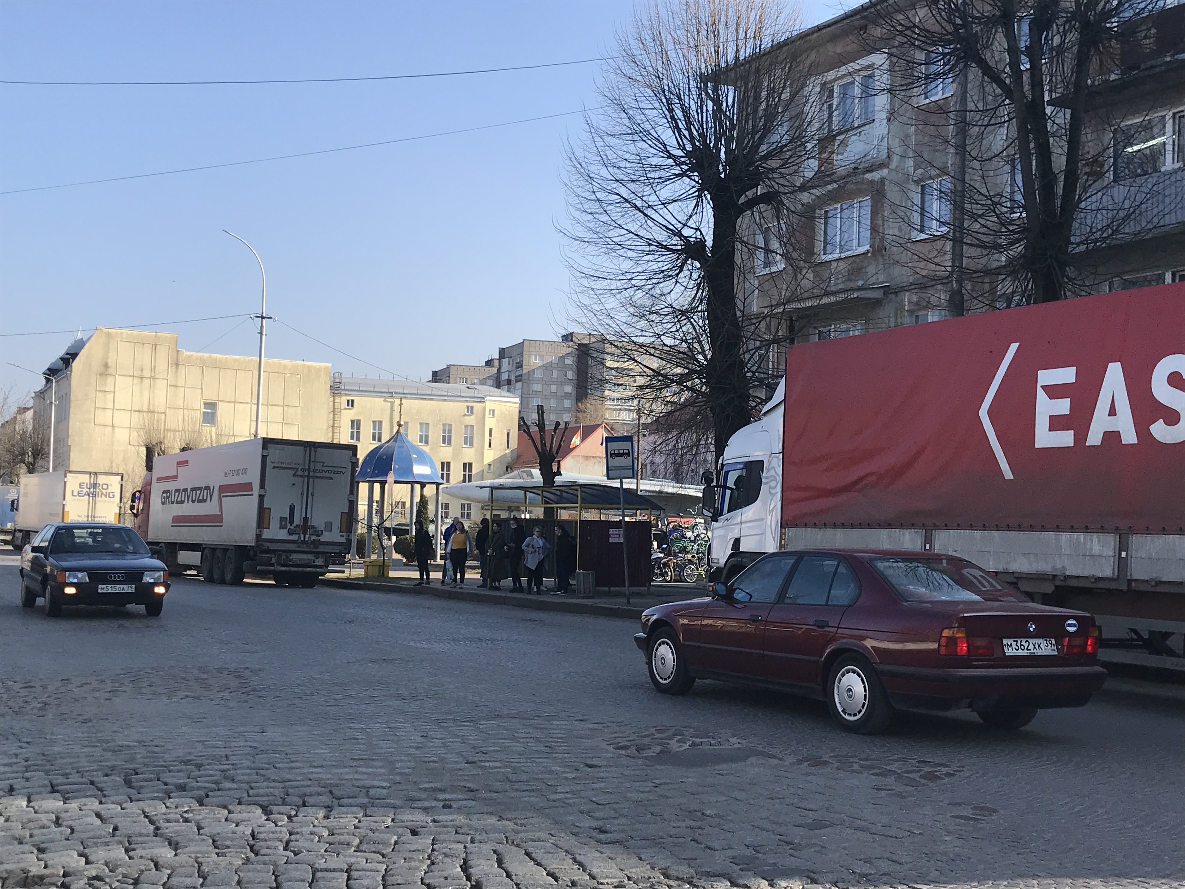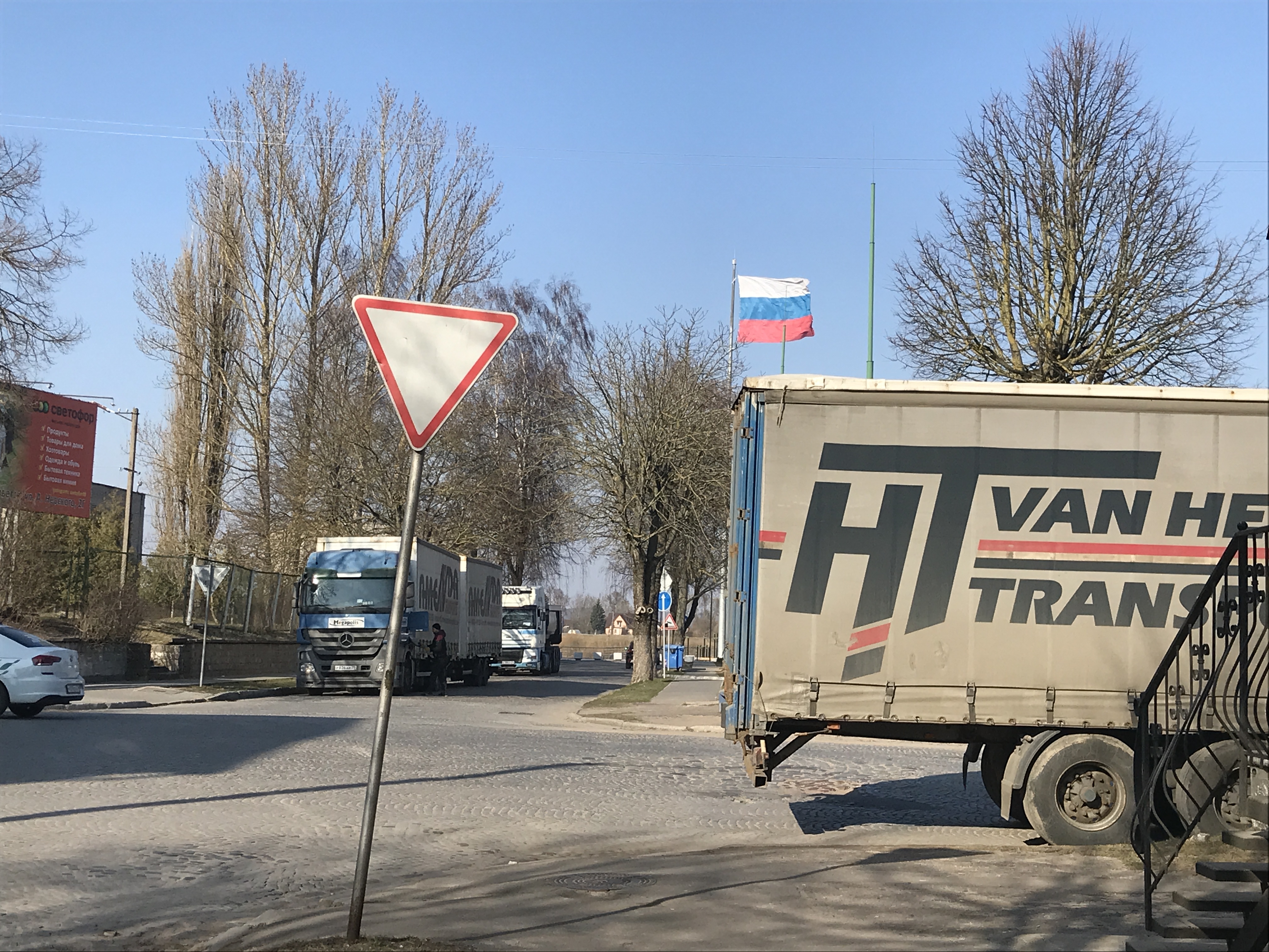 Если на подъезде к Чернышевскому фуры стоят в поле, то в Советске – прямо в городе. Сотни фур выстроились вдоль пограничной реки Неман. В основном это пустые фуры, без груза.