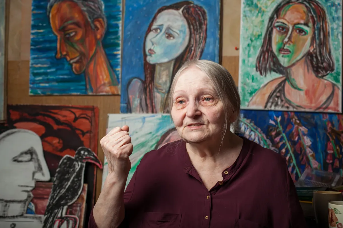 Елена Осипова, 77-летняя художница, двадцать лет выходит на улицы Петербурга со своими картинами-плакатами, написанными на злобу дня