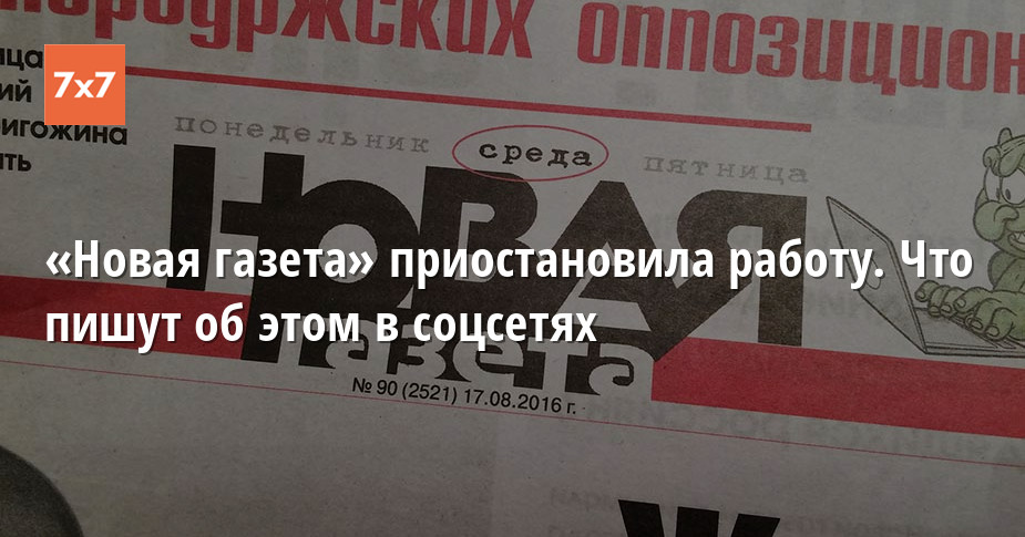 Редакция «Новой газеты» приостановила выпуск издания на сайте, в сетях и на бумаге до окончания военной спецоперации в Украине. Журналисты заявили об этом после вынесения СМИ второго предупреждения от Роскомнадзора за отсутствие в одном из материалов маркировки у НКО-иноагента. Это грозило «Новой» отзывом лицензии СМИ на год. Как на временное закрытие издания отреагировали журналисты, публицисты и политики — в обзоре блогов «7х7».