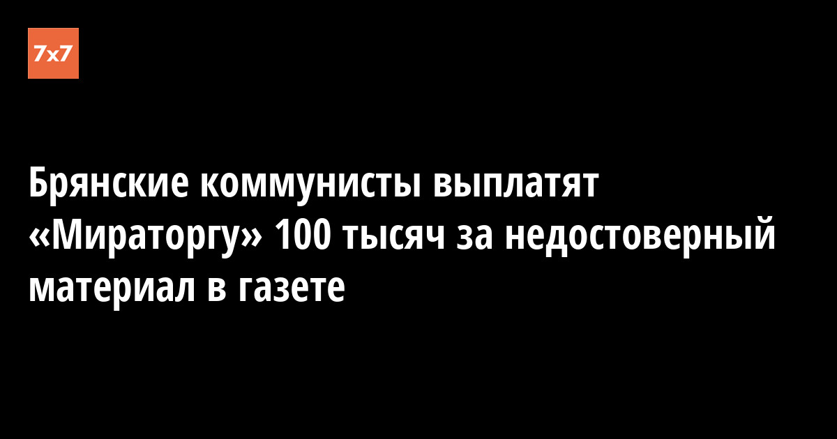 Брянские коммунисты выплатят «Мираторгу» 100 тысяч за недостоверный материал в газете
