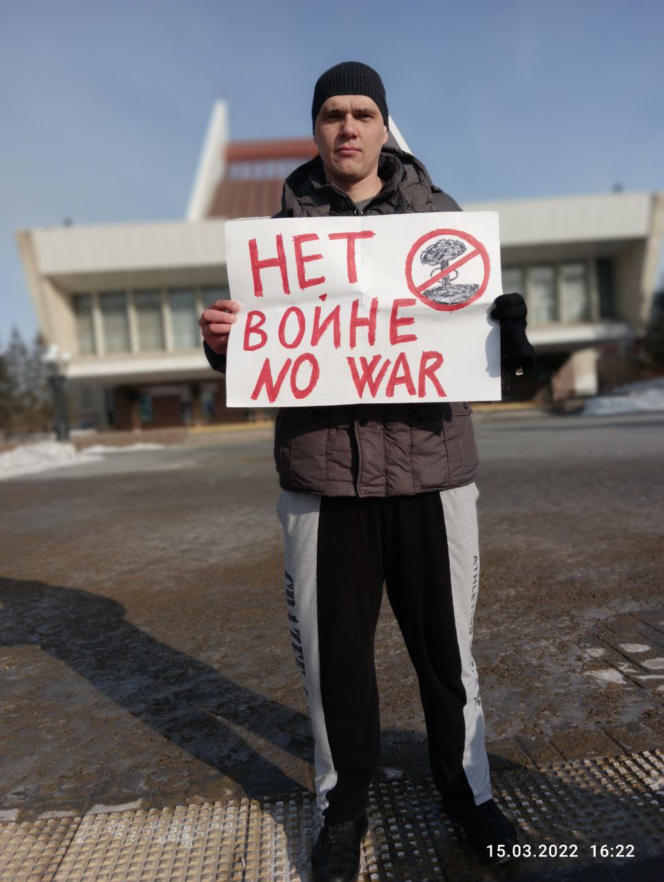 Другой житель Омска вышел на Театральную площадь с плакатом "Нет войне".