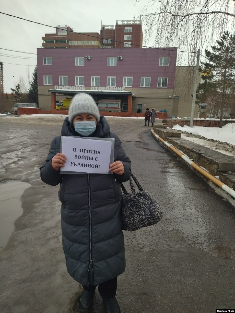 Она вышла с плакатом "Я против войны с Украиной".