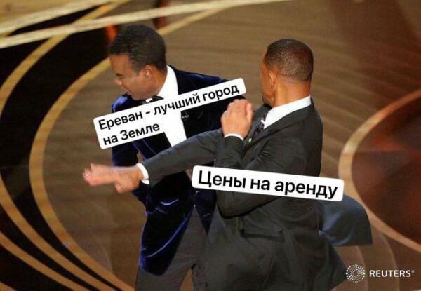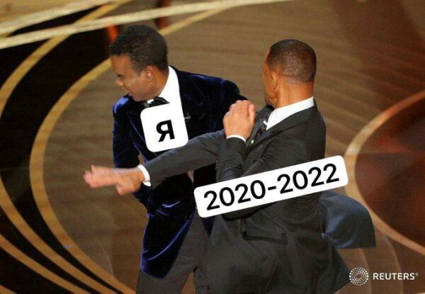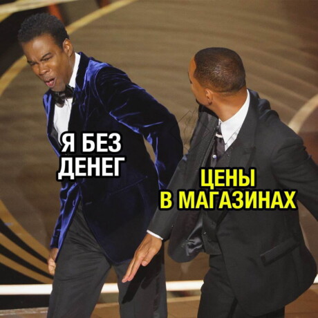 В соцсетях фотография, сделанная сразу после того, как Смит ударил Рока, разошлась на мемы. Пользователи сравнили удар с шоком от новостей в 2022 году и неожиданным резким повышением цен.