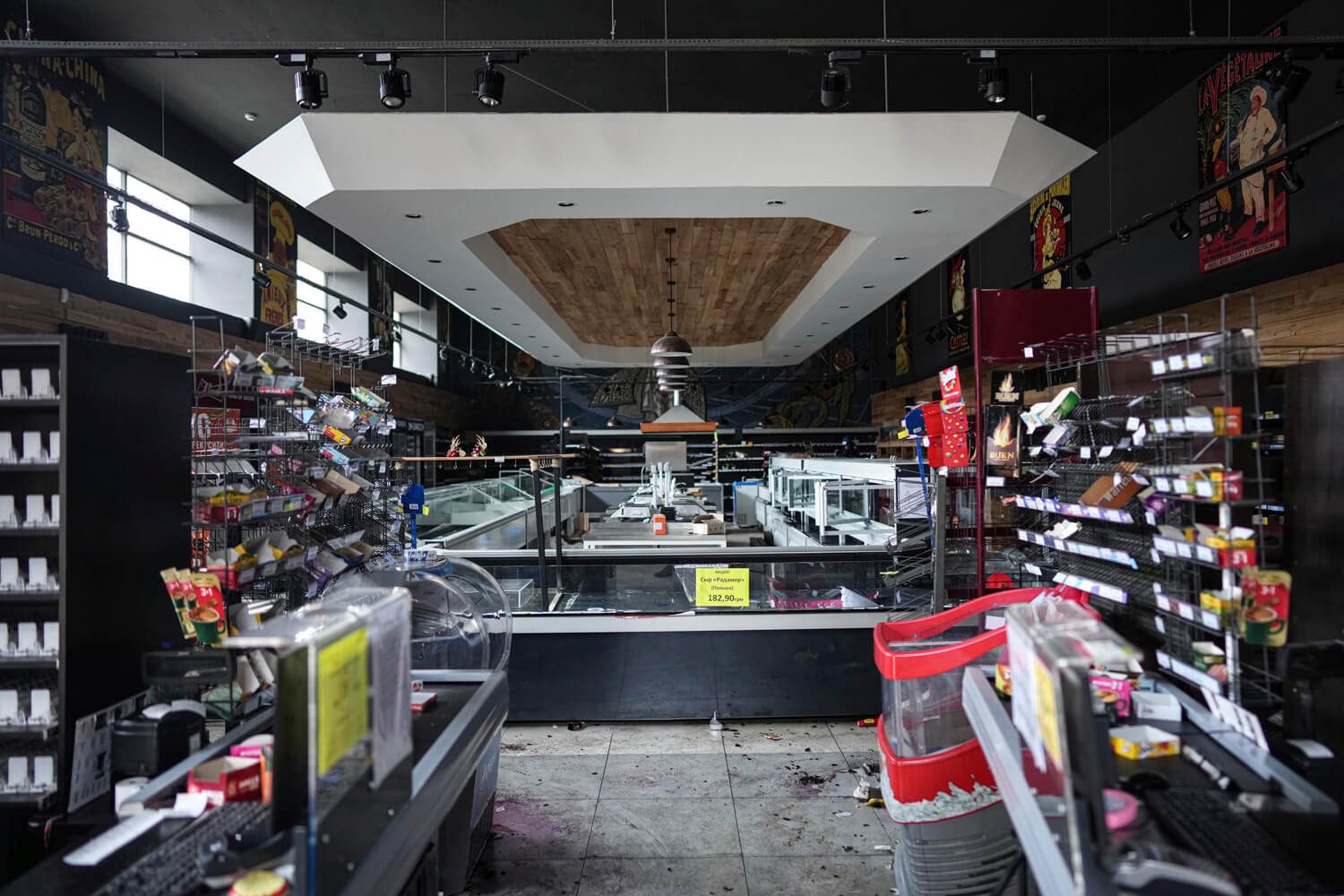 Где-то 25–26-го числа продуктовые магазины у нас на районе «разбомбили» [мародеры]. Ввели комендантский час, но по ночам слышно было, как сыпятся витрины и выносят [товары]. Город в полном мраке, ни хрена не видно, сигнализации не работают, и наутро эти магазины были уже покоцанные, побитые. Хоть и комендантский час, и [спустя несколько дней] говорили, что мародеров будут расстреливать на месте, — но люди все равно от отчаяния лезли в этот магазин и брали там продукты. Народу была тьма.