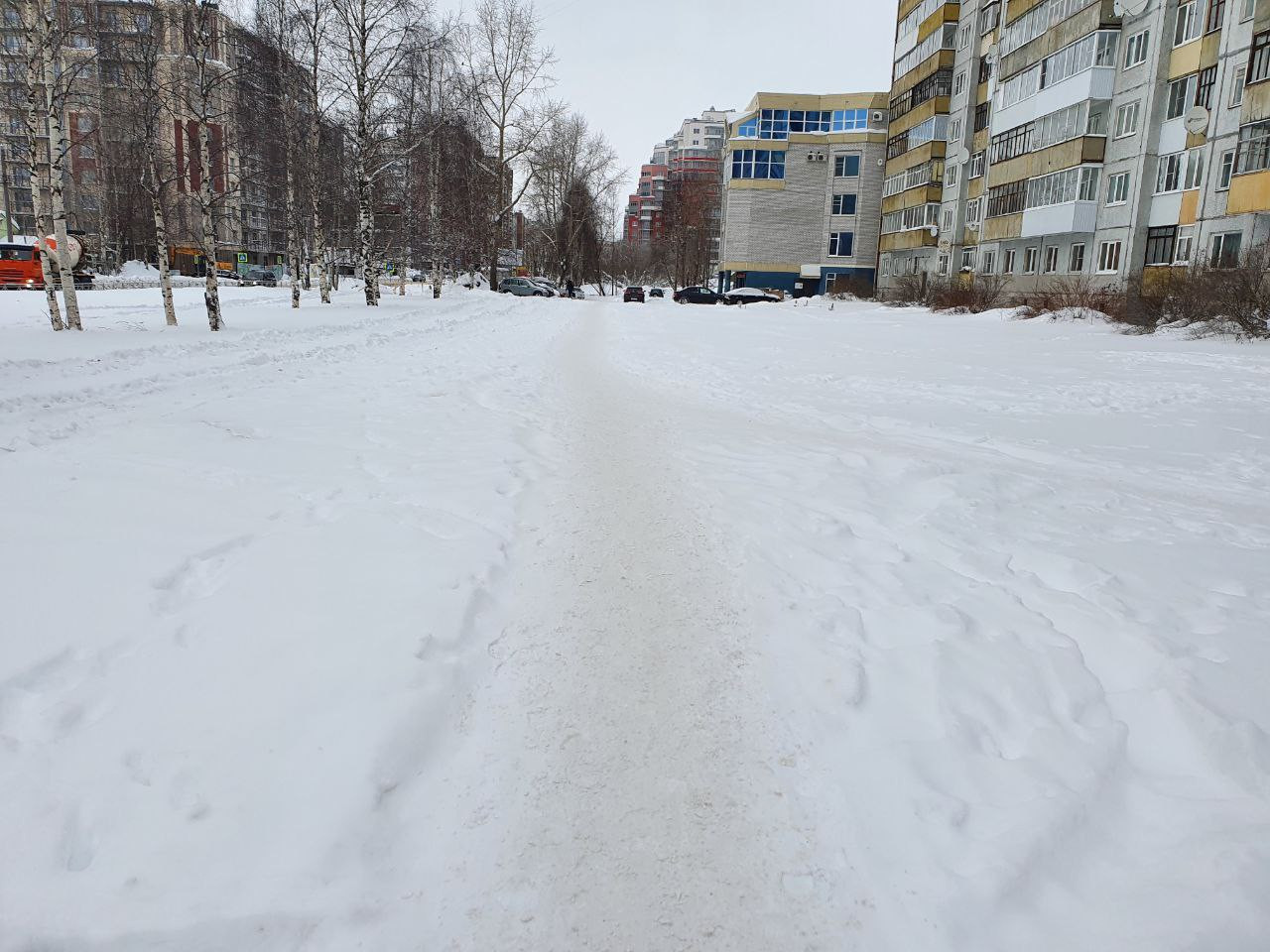 4. На Павла Усова в 2020 году по БКД появился тротуар, но большую часть времени он был завален снегом.